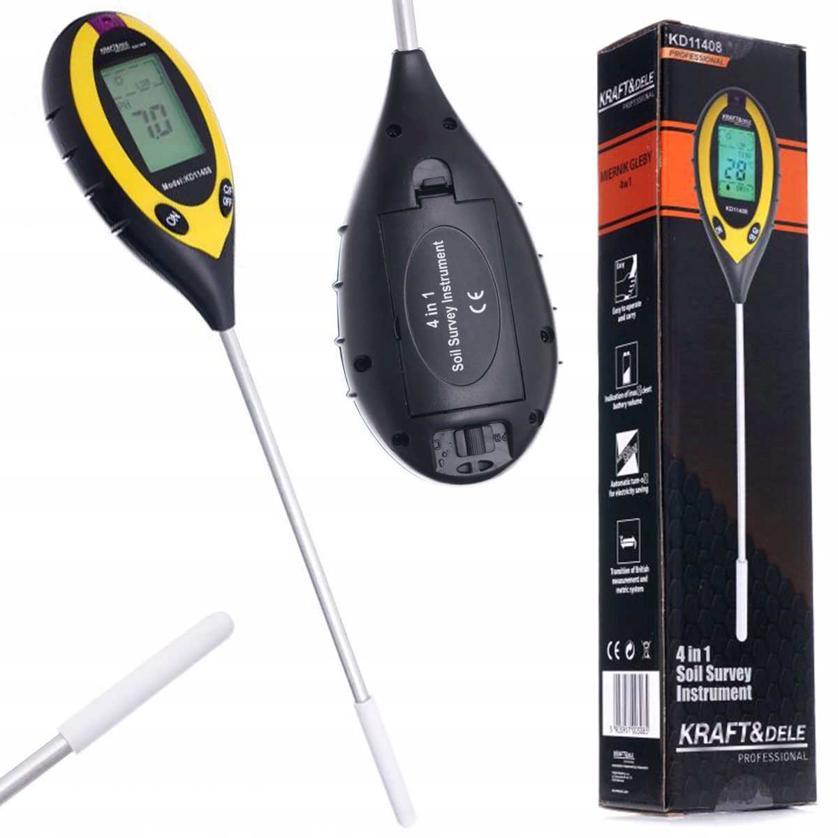 Тестер ґрунту KD11408 4 в 1 може перевіряти вологість ґрунту, значення рН, температуру та інтенсивність зовнішнього сонячного світла за допомогою зонда довжиною 200 мм.