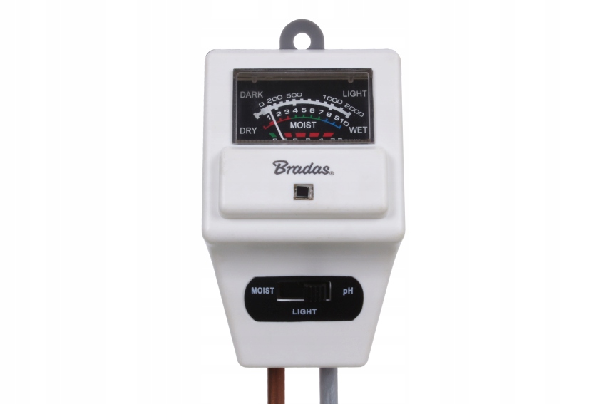 - Прилад, який дозволяє вимірювати як кислотність ґрунту, так і вологість, а також інтенсивність сонячного світла.