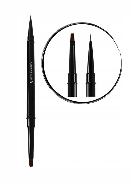 Staleks Pro Expert NBE-01/04 - це двосторонній пензлик, створений для стилістів, які очікують точності в декораціях і комфорт при роботі з гелем. Поєднання тонкого лайнера 7 мм і овальної кисті для гелю 7 мм дозволяє створити як художні деталі, так і ідеально розташувати матеріал.