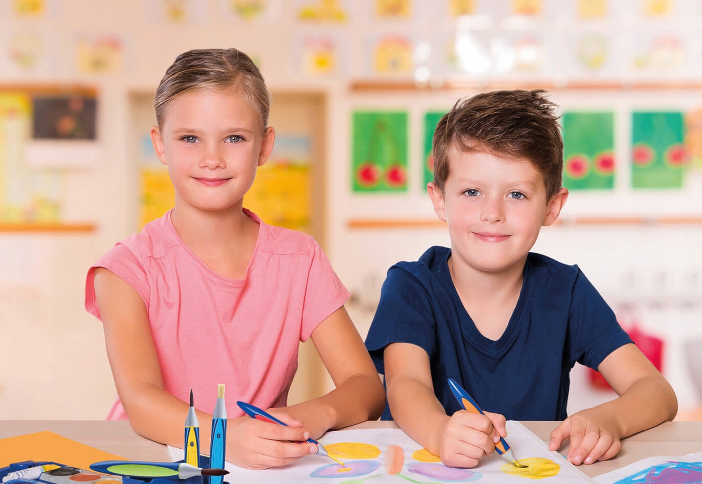 - Трикутна форма пензлики запобігають скочуванню зі столу під час малювання
