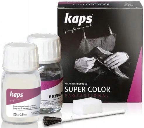 Фарба для натуральної, синтетичної шкіри та текстилю. Розроблений для доповнення незначних дефектів шкіри внаслідок потертостей та подряпин взуття та шкіряних аксесуарів. Забарвлюйте та поновити колір постійно. Це дозволяє змінювати кожен колір навіть від чорного на білий. Водний стійкий агент не викликає тріщин. Кольорова шкіра супер кольору готова до використання через 24 години.