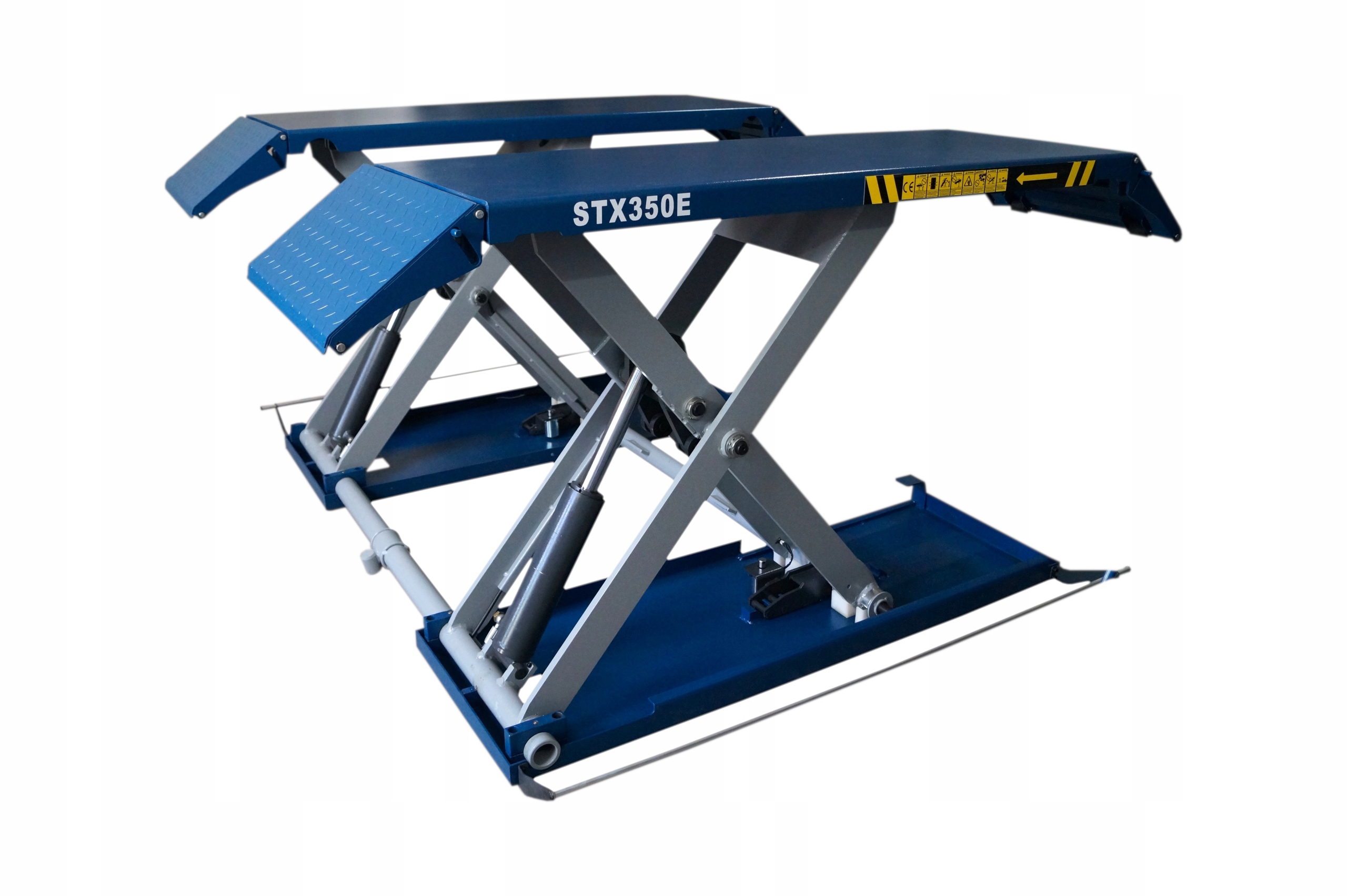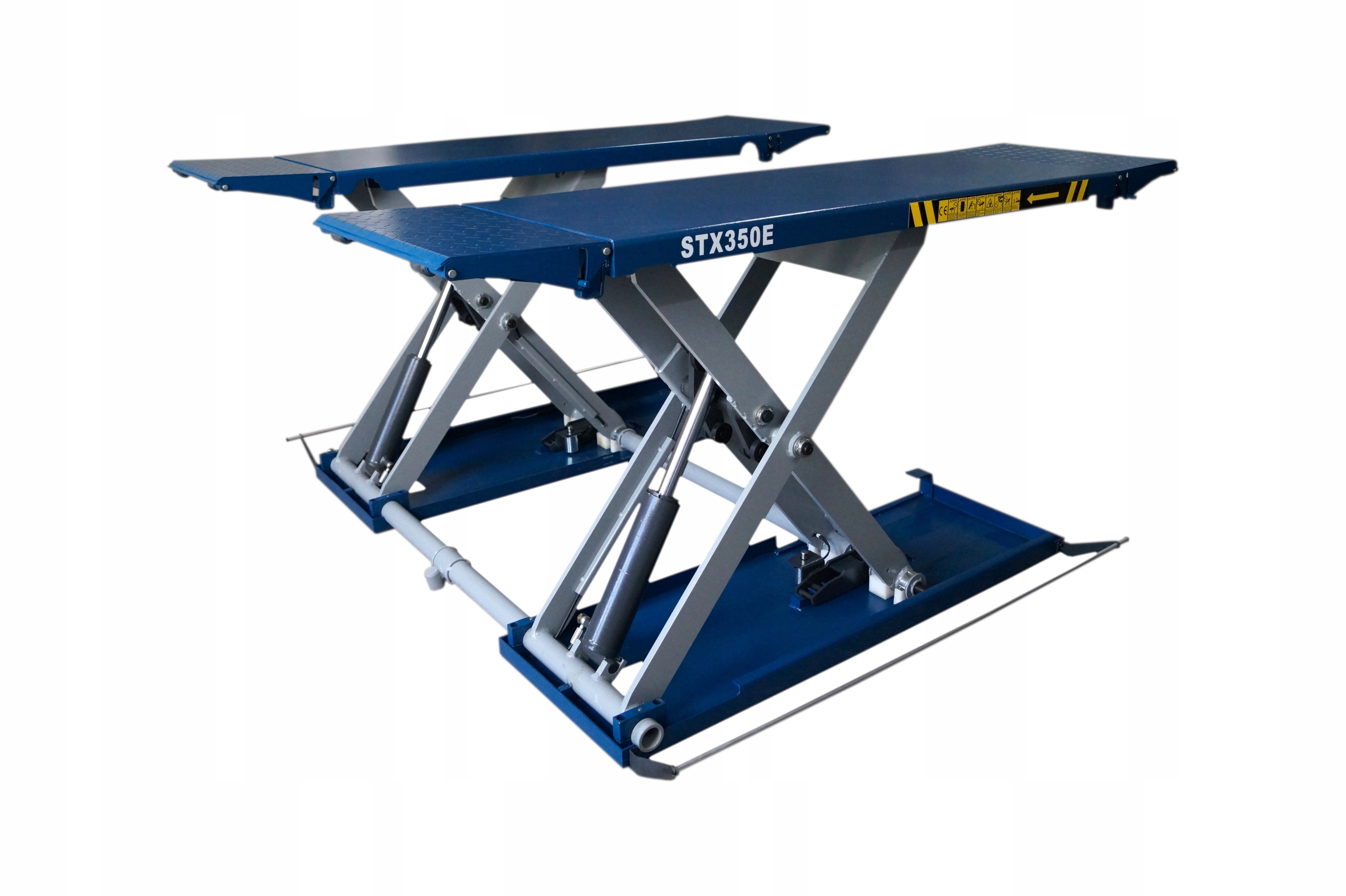 - Lift STX350 обладнаний 3T підйомна ємність, довгі платформи 1400-2010 мм та візок, що дозволяє переміщувати підйомник.