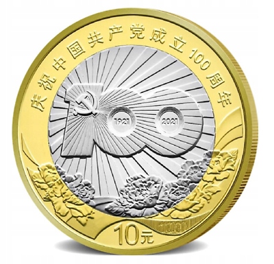 Китай 10 юанів 100 років Комуністичної партії 2021