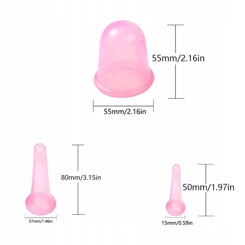 Китайські масажні чашки виготовлені з м'якого та еластичного силікону. Вони використовуються в основному для косметичного масажу обличчя, але також можуть використовуватися як доповнення до лікувального масажу при лімфедемі обличчя. Чашки безпечні, і при їх використанні не потрібно використовувати вогонь, як у випадку з традиційними скляними чашками. Баночний масаж - це вакуумний масаж, його робота заснована на негативному тиску, а завдяки гнучкій структурі можна регулювати ступінь присмоктування чашки до шкіри під час масажу. Терапія приємна і дає відчутні результати.
