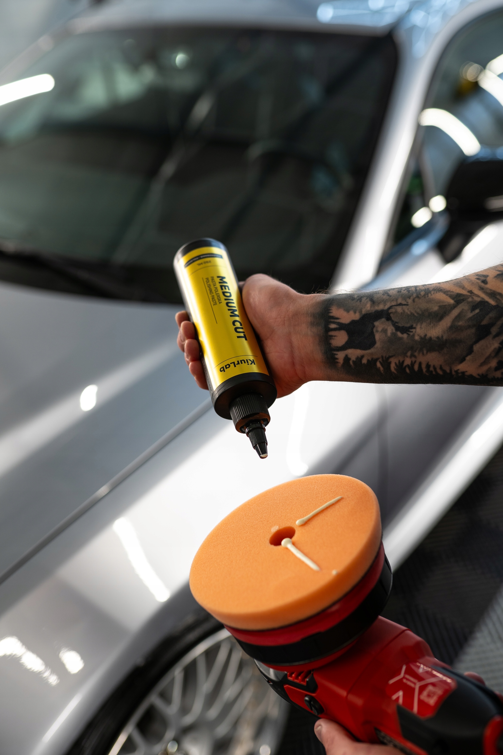 - Для сильно пошкоджених фарб спочатку нанесіть полірувальну пасту KiurLab Heavy Cut Polishing Paste.