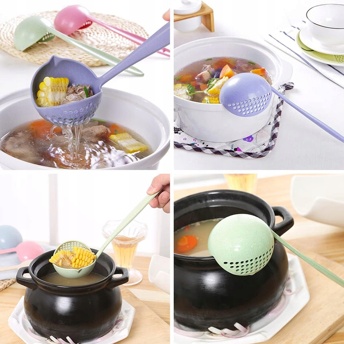 Зручна кухонна ложка 2-в-1 є необхідним аксесуаром на кожній кухні. Ідеально підійде, коли пельмені чи макарони, щойно вийняті з каструлі, викладаєте на тарілку та наливаєте воду за допомогою спеціального тиснення.