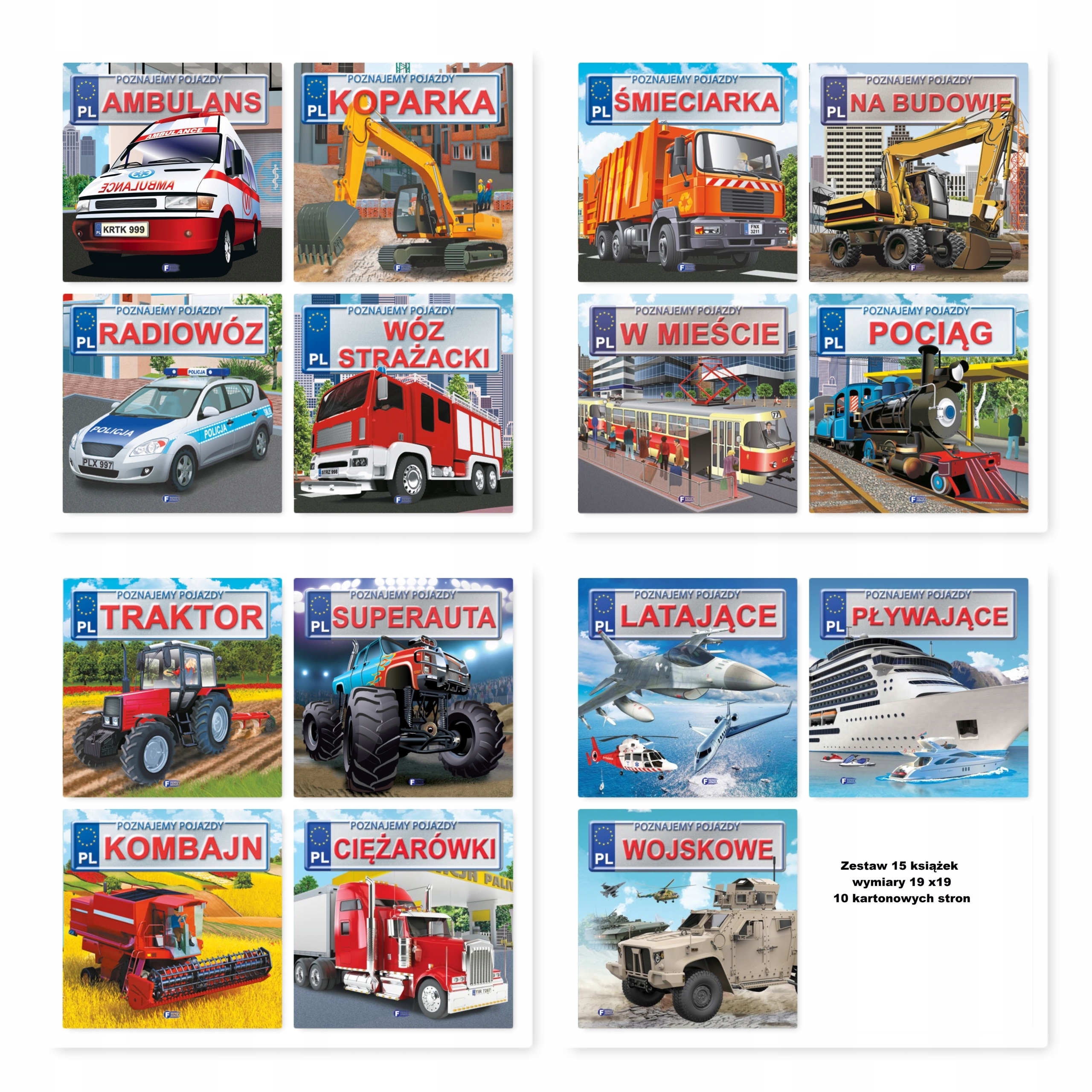 Ми знайомимося з транспортними засобами - це колекція з 14 книг для дітей, що зображують історії про маленьких героїв, вивчення транспортних засобів. Вірші з римами дозволять наймолодшим випробувати дивовижні пригоди, в тому числі з екскаватором, поїздом або сміттєвим вантажівкою. Цей навчальний серіал не лише надасть необхідну інформацію про кожен транспортний засіб, але й дозволить дітям та батькам проводити радісні моменти з книгою. Незвичайні історії та барвисті ілюстрації сприятимуть наймолодшому дослідженню світу.