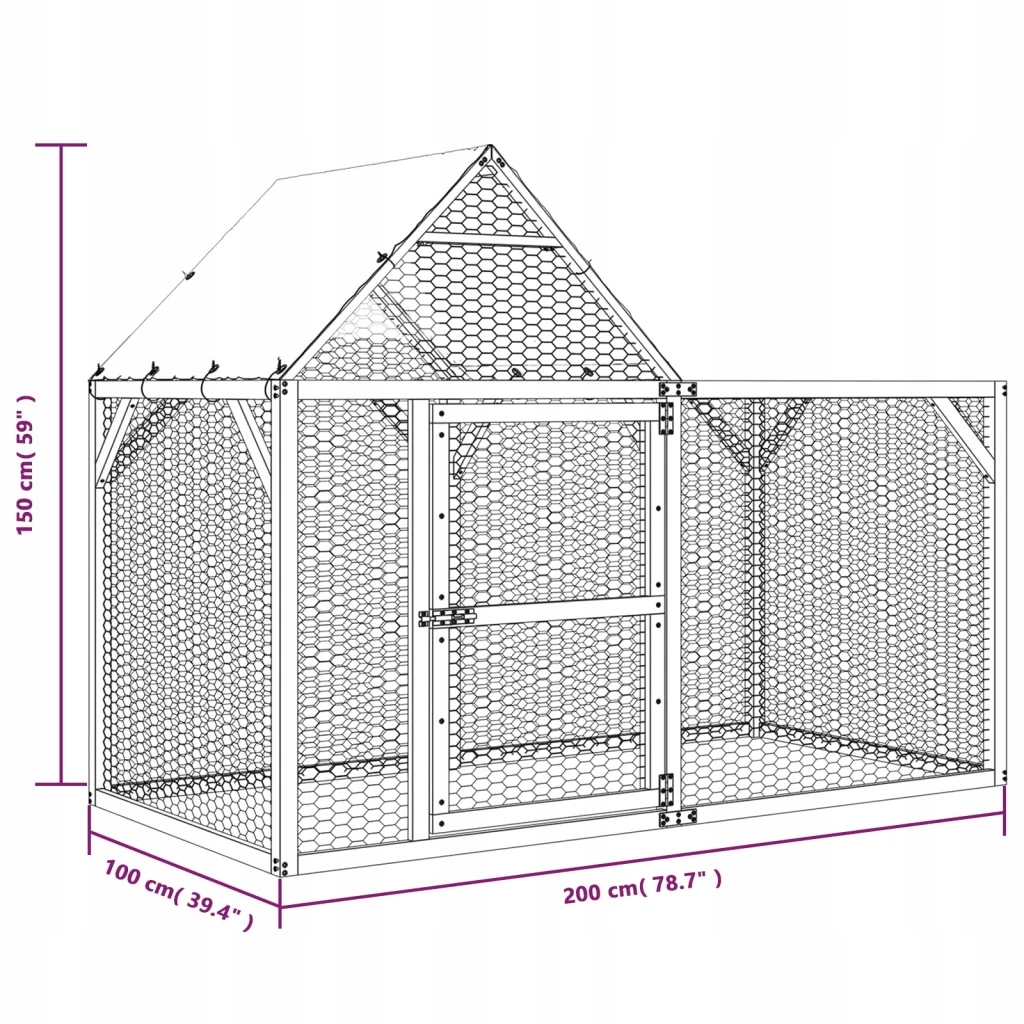 Klatka dla kurcząt, 200x100x150 cm, impregnowane drewno sosnowe