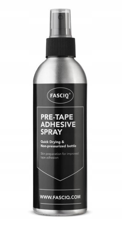 Fasciq Pre-Tape Spray - це швидковисихаючий клей для кінезіотейпування, який подовжує час нанесення на шкіру. Рекомендується особливо для спортсменів, особливо тих, хто займається водними видами спорту, а також може використовуватися для частин тіла з підвищеним потовиділенням і неправильної форми. Клей поставляється у вигляді екологічно чистого рідкого спрею. Не містить пропелентів і не залишає слідів на шкірі, лише створює на ній безбарвний наліт. Гідрофобна формула робить його стійким до води та поту. Fasciq Pre-Tape Spray поставляється в зручному флаконі з розпилювачем, який можна легко упакувати та взяти з собою куди завгодно. Завдяки цьому кінезіотейпування, що використовується, буде довговічним та ефективним, а отже, матиме кращий терапевтичний ефект.
