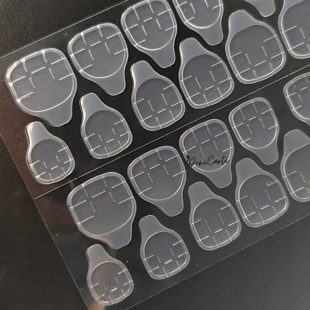 Аркуш містить 24 двосторонні прозорі наклейки 6 розмірів. Гель-клей для нігтів у вигляді наклейки для нігтів відмінно замінить звичайний клей для штучних нігтів. Легке нанесення дозволить вам створити гарний манікюр всього за кілька хвилин. Клей-гель щадить плитку.