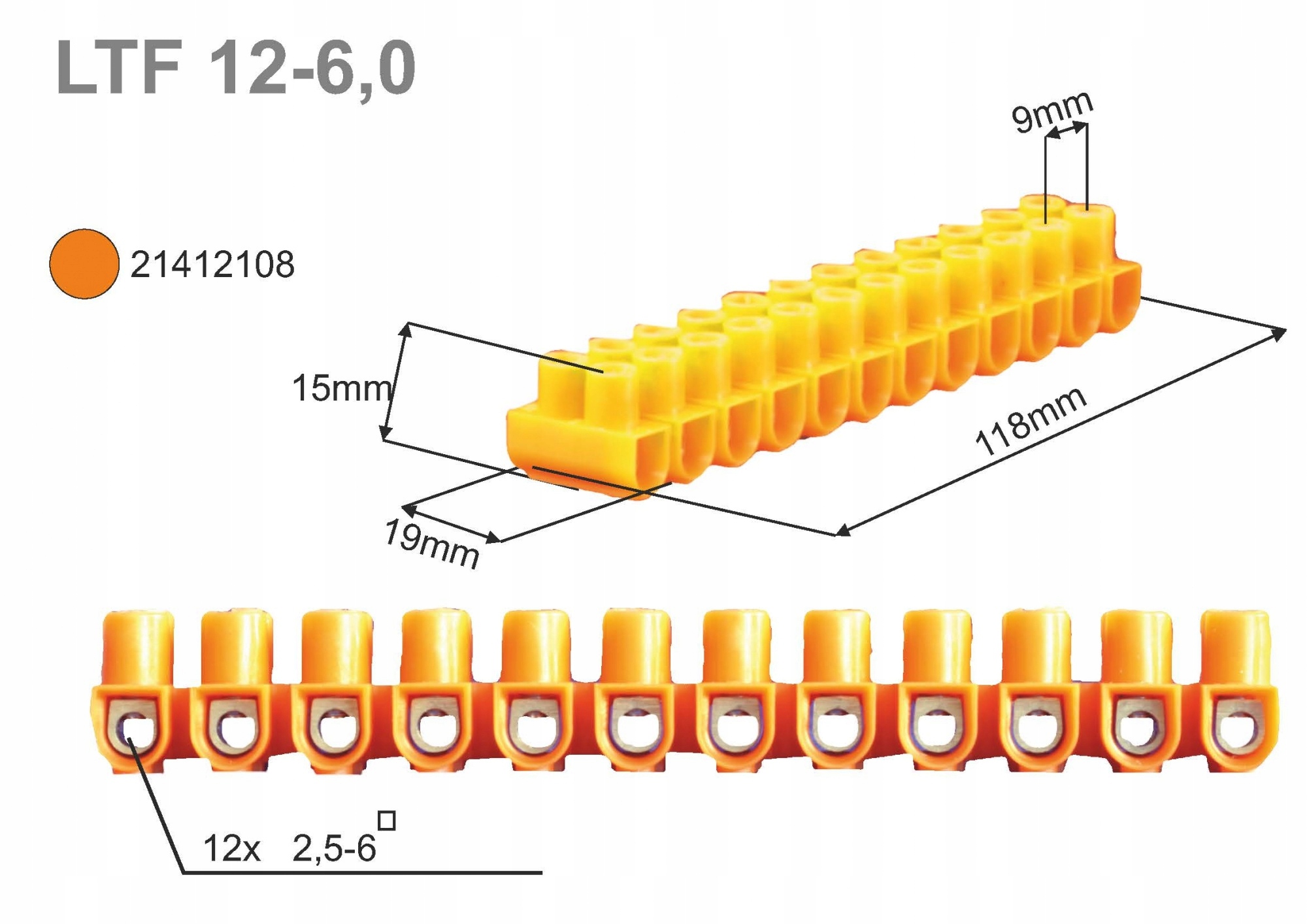Термопластичний різьбовий клемник, 6,0 мм², 12 каналів, поліетилен, T55 C