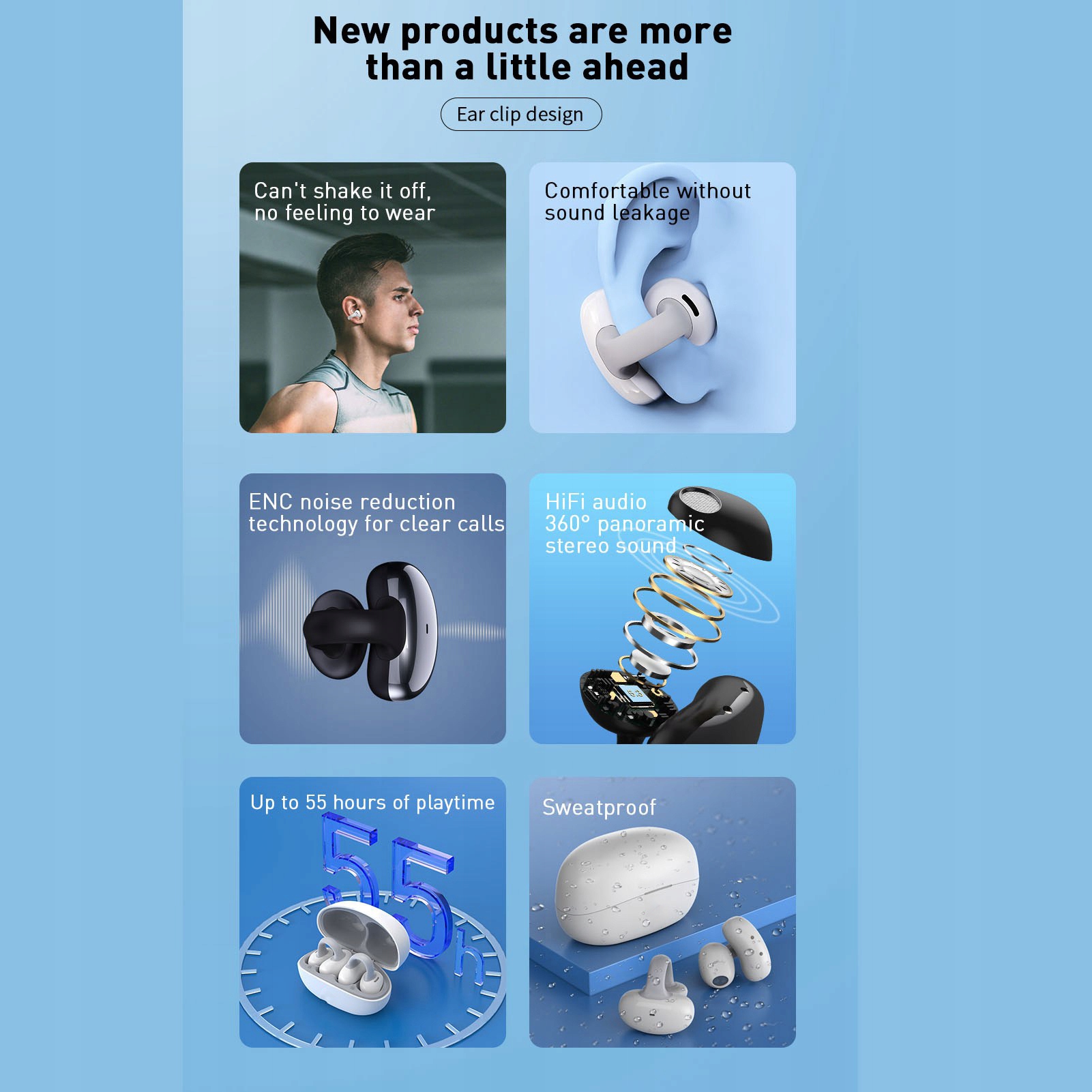 3. ШУМ ТА СТЕРЕО ОХОЛОДЖЕННЯ: навушники з кліпсою мають технологію шумозаглушення ENC, яка ефективно зменшує навколишній шум і безлад під час дзвінків Ultra HD. Забезпечує HIFI стерео, ефект занурення.