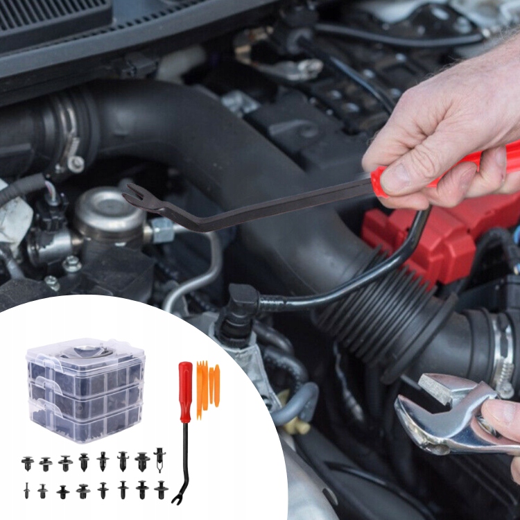 Набір 625 ЕЛЕМЕНТІВ, який включає 18 найпопулярніших розмірів кліпс і кріпильних конекторів. Набір доповнено інструментом для зняття затискачів.