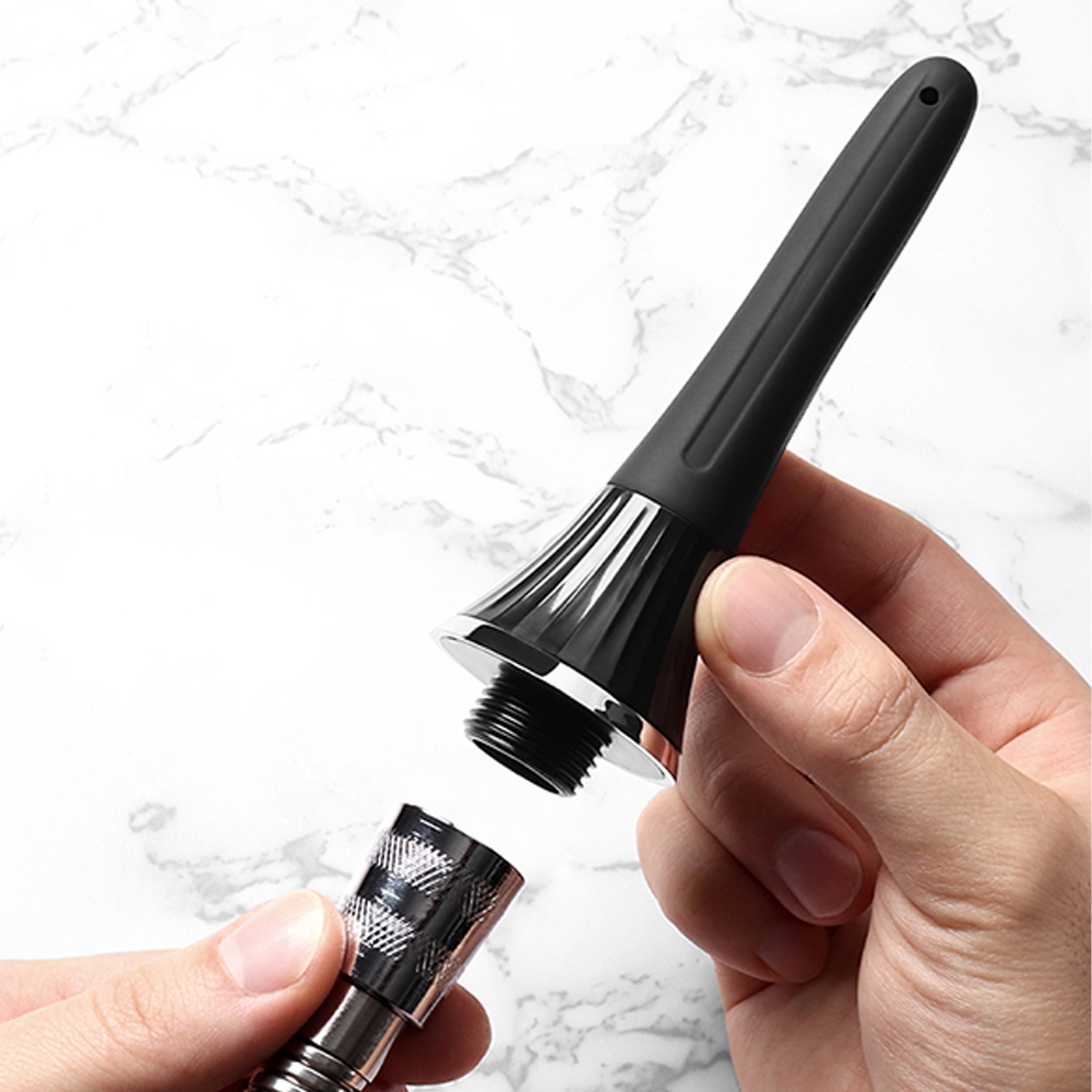 - - Є 5 металевих носиків, вода розбризкується рівномірно, а натискання на силіконову пляшку, наповнену водою, вручну може забезпечити ретельне очищення на 360°.