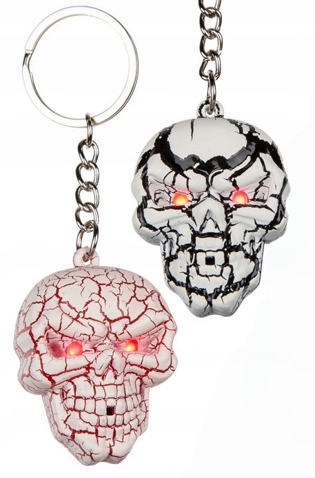 Ключове кільце клавіш у формі черепа з світлодіодним ліхтариком. Смішна і корисна дрібниця, яку ви завжди можете мати з собою, і завдяки ліхтарику в очах ви можете висвітлити, серед інших, замок, до якого важко вдарити в темряві.