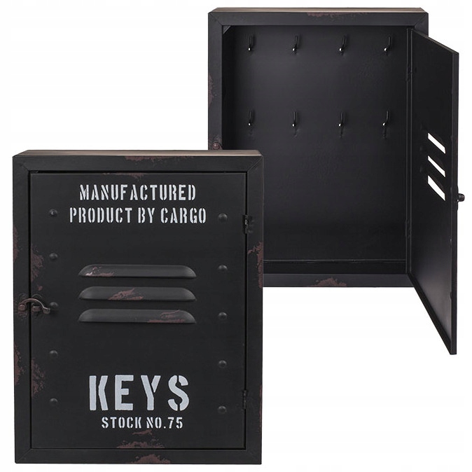 Металева скринька - скринька для зберігання ключів із вісьмома гачками та декоративною ручкою для відкривання.