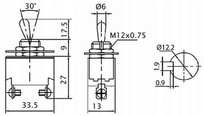 Перемикач KN3B-101 2-позиційний одинарний ON-OFF SPST 2P, KN3B-101