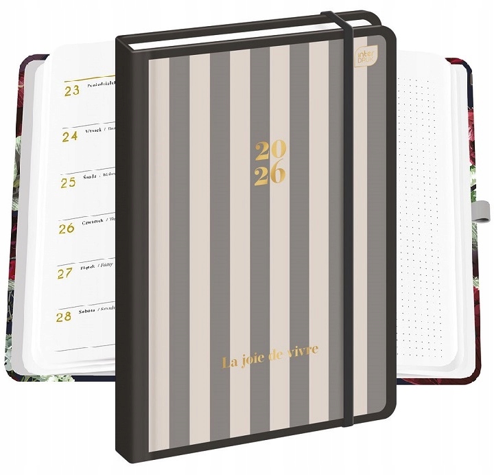 Календар 2026 у твердій матовій обкладинці з яскравими блискучими деталями, що привертають увагу, з практичним місцем для нотаток і макетом календаря на 1 тиждень 1 сторінка.