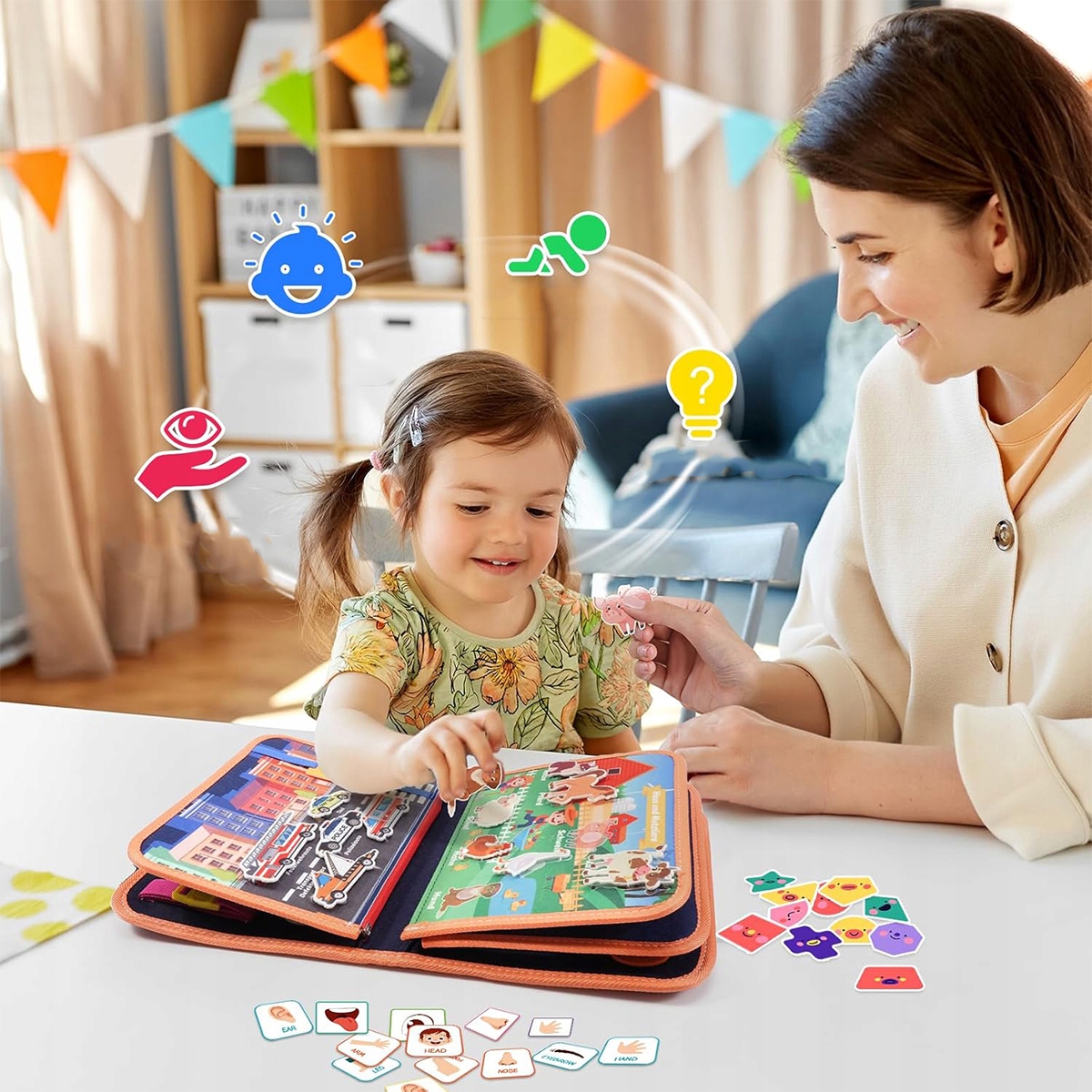 Ця книжка Монтессорі добре розроблена, і її розмір краще підходить для маленьких дітей. Ви також можете використовувати цю розвиваючу іграшку з дітьми, щоб навчити їх розпізнавати слова, навички одягання та підбору предметів. Ідеально підходить для початкових класів у дошкільному віці. Це також чудовий спосіб замінити екранний час.