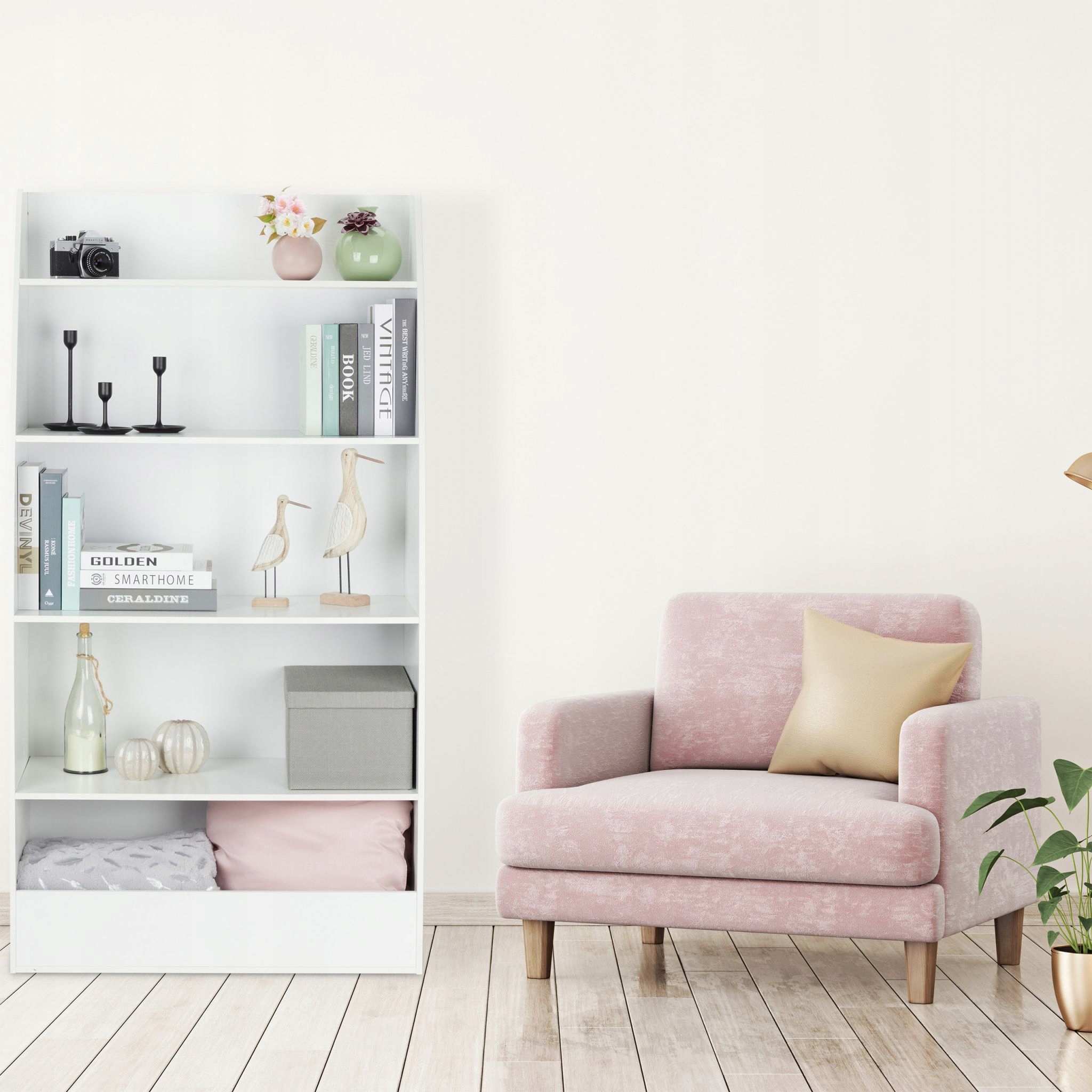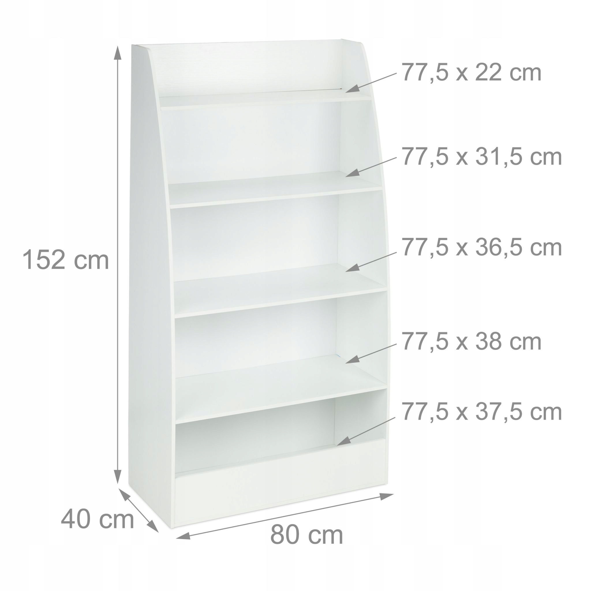 Завдяки цій окремо стоячій полиці ви можете створити оптимальний простір для зберігання в кімнаті вашої дитини. Біла книжкова шафа пропонує місце для книг, іграшок та багато іншого на 5 полицях. У мить ока ви маєте все відсортоване та готове до використання. Завдяки заокругленим кутам він особливо підходить для дітей. Для оптимальної стійкості прикріпіть дитячу полицю до стіни за допомогою монтажного матеріалу, що входить у комплект. Завдяки простому зовнішньому вигляду полиця також підходить для DVD-дисків у вітальні та декорацій у залі.
