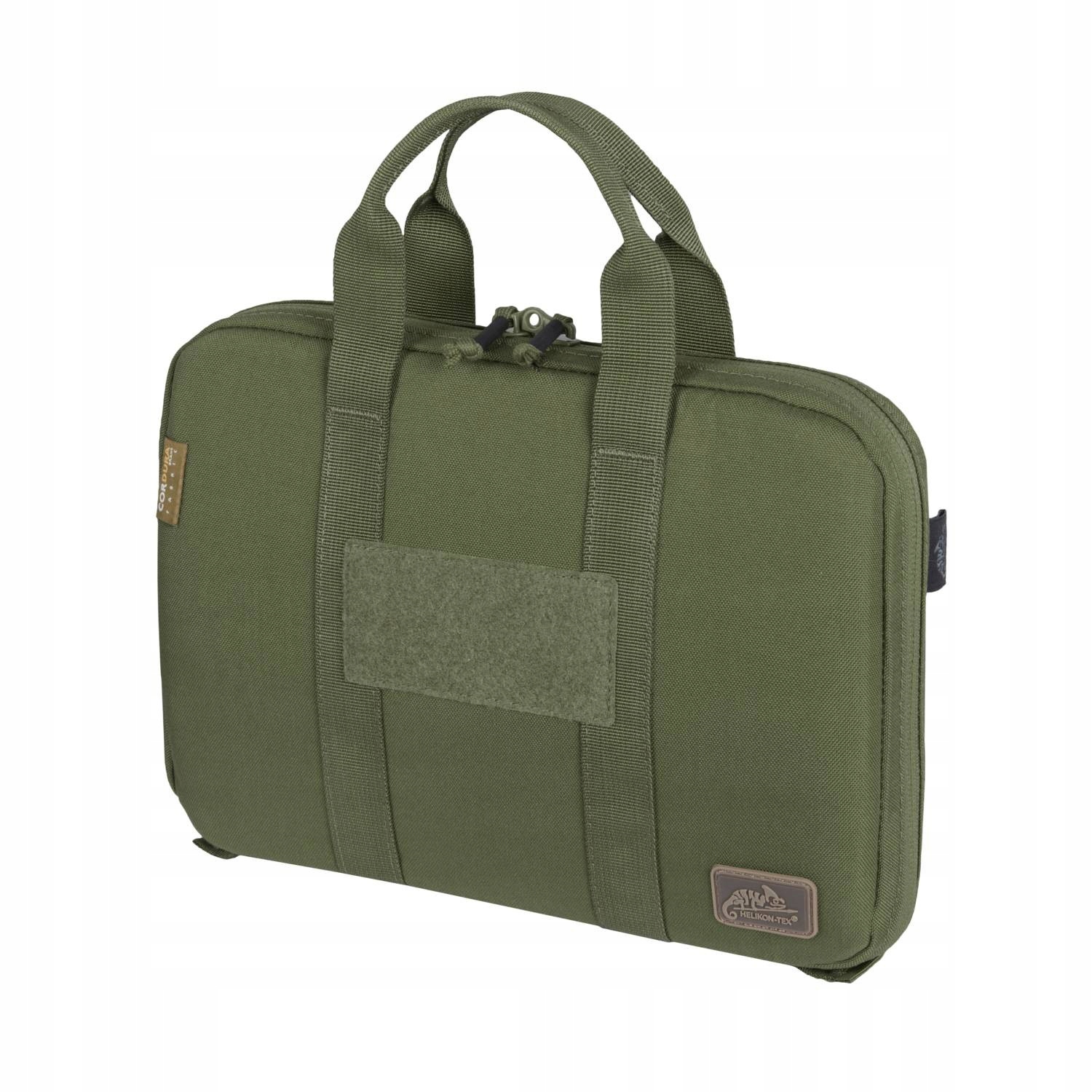 кришка гаманця пістолета Helikon виготовлена з міцної Cordura 500d для безпечного транспортування зброї. Захищає вміст від механічних пошкоджень під час подорожі. У ньому розміщено пістолетний блок та 1 журнал, прикріплений до ременів липучок. Вони не дозволяють вмісту рухатися під час транспорту. На обкладинці є внутрішній комір, який захищає від подряпини на блискавку. Зовнішня панель липучка дозволяє прикріпити емблему. Він оснащений двостороннім замком, завдяки якому він підходить для лівого та ручного правого ручного. Два ручки матеріалу полегшують переміщення сумки.