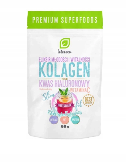 Intenson Collagen + Vitamin C - це комбінація гідролізату колагену та вітаміну C у чистому вигляді. Продукт не містить додавання цукру, підсолоджувачів, консервантів та ароматизаторів. Рекомендується всім людям, особливо людям з підвищеним фізичним навантаженням, людям, які піклуються про стан свого волосся, шкіри та нігтів, а також людям похилого віку. 90% колагену + 10% вітаміну С = 100% якості!