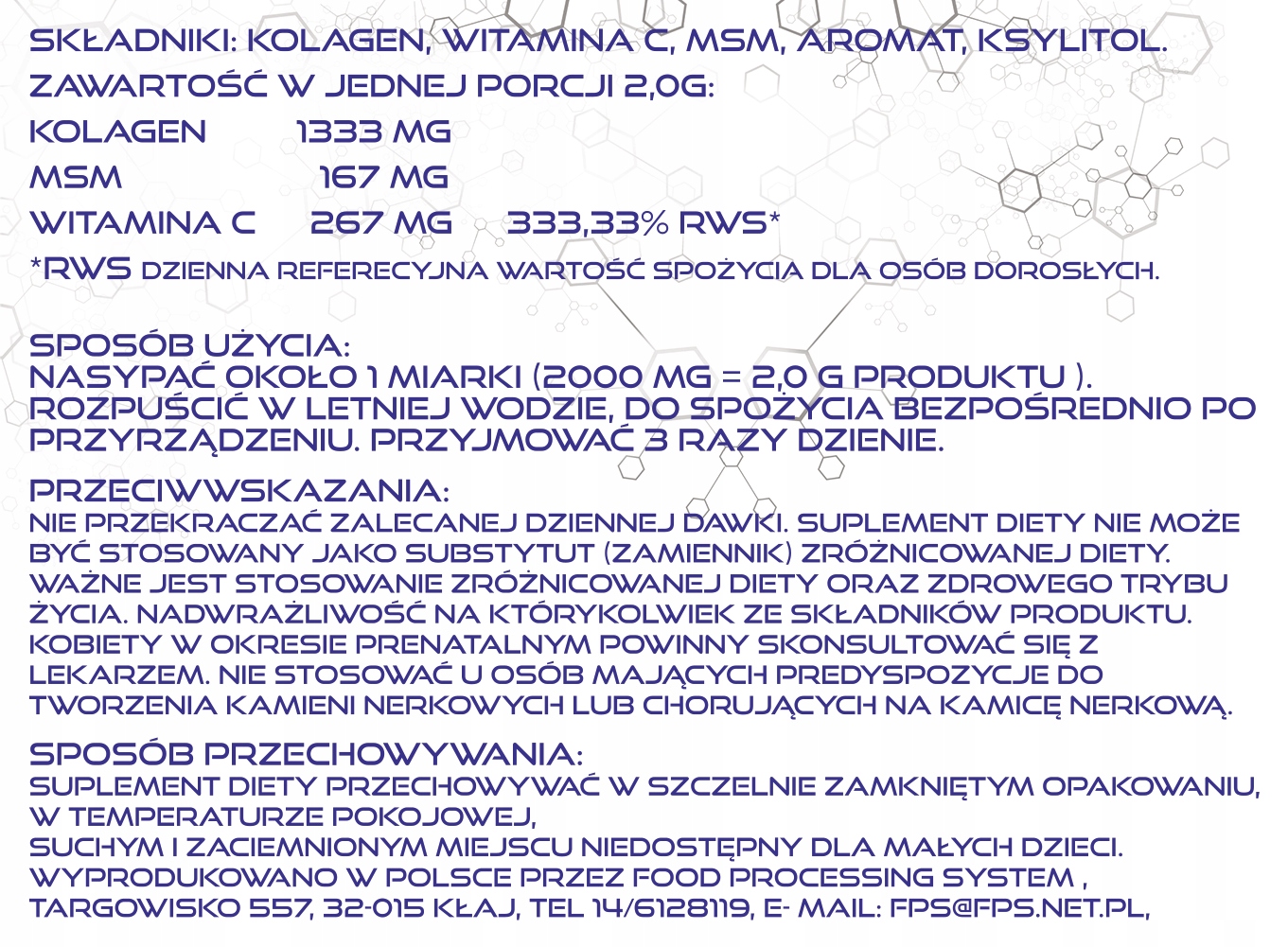 - Інгредієнти: колаген, вітамін С, органічна сірка (метилсульфонілметан) ) , Аромат, Ксиліт