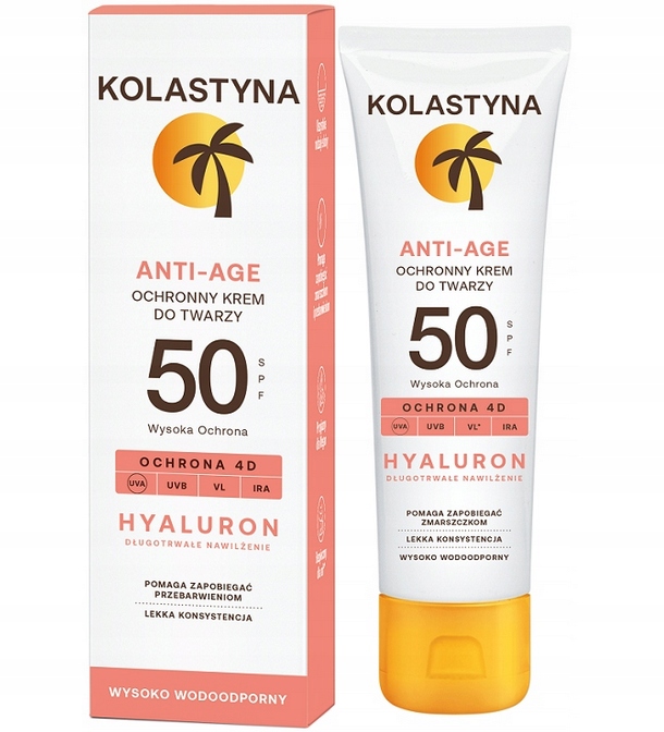 KOLASTYNAіде на крок далі в захисті від сонця, забезпечує ультразахист обличчя від 4 основних типів випромінювання: UVA, UVB, VL, IRA, відповідальних за пошкодження шкіри. Поєднуючи надзвичайно зволожуючу силу гіалуронової кислоти з технологією Age Protect, вона допомагає запобігти передчасному старінню шкіри та знебарвленню, спричиненому впливом сонячного світла.