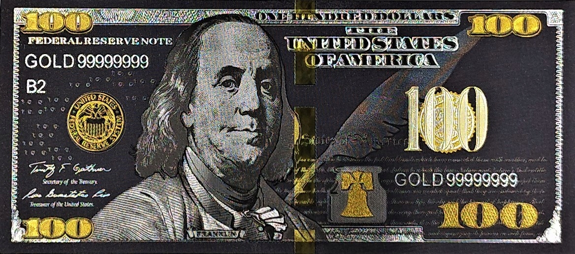 Pпрекрасна позолочена 100-доларова купюра BLACK & GOLD .