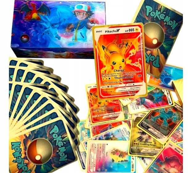 Це рідкісний витвір мистецтва,зроблений із високоякісної золотої фольги, водонепроникної та міцнішої, ніж звичайні паперові картки. Помістіть найновіші картки 55 PCS у тримач і дайте їм сяяти разом з іншими картками.