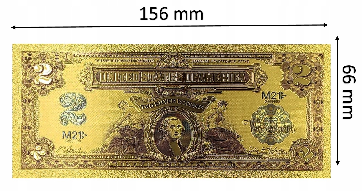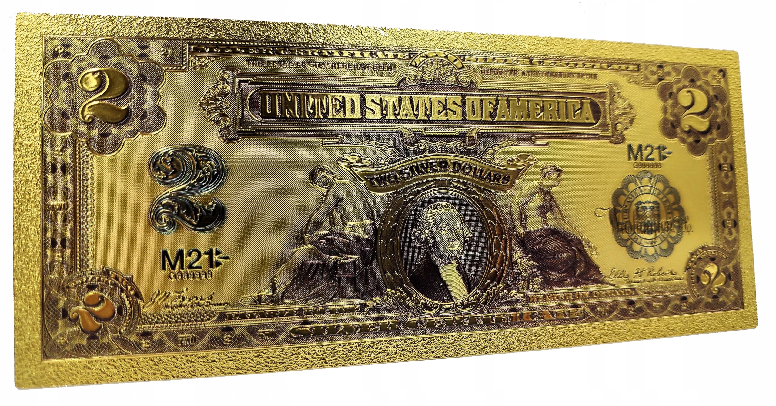 Колекційна купюра в 2 долари 1899 року з позолоченим покриттям