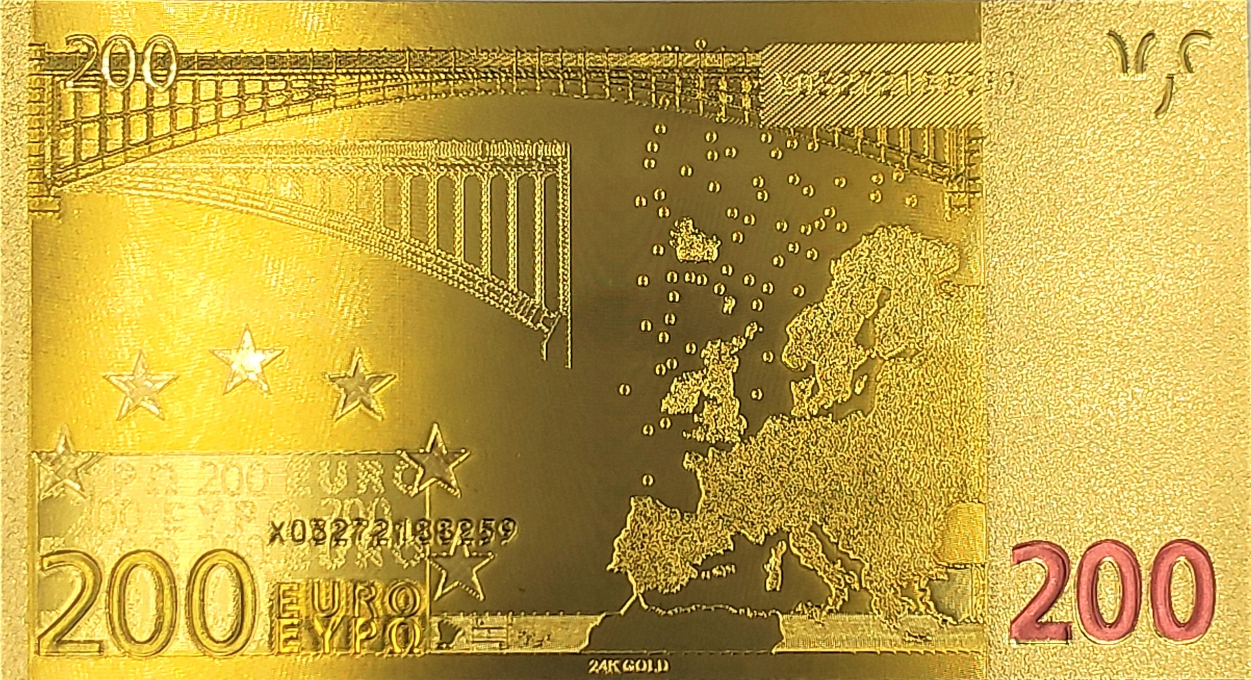 ПОЗОЛОЧЕНА БАНКНОТА НОМІНАЛОМ 200 ЄВРО