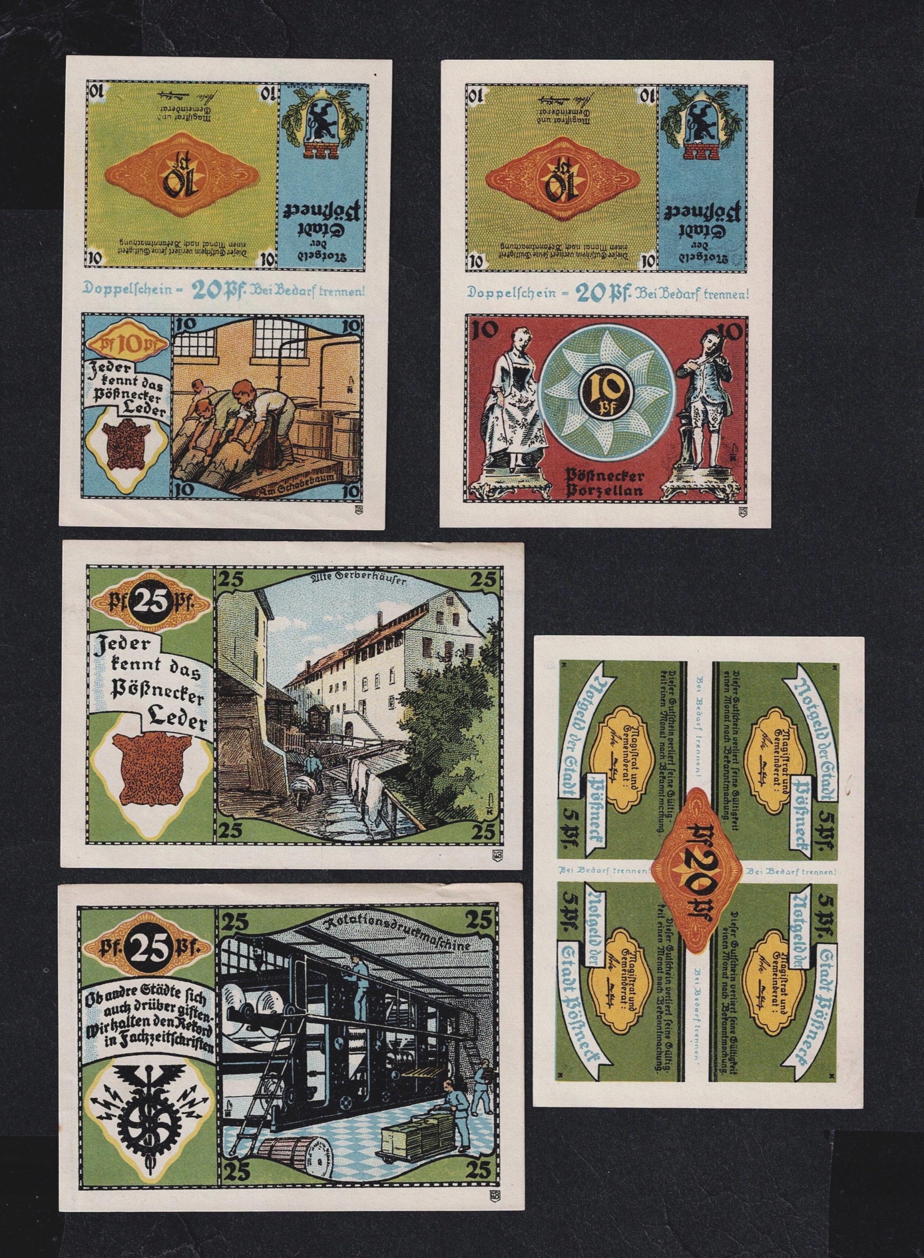 КОЛЕКЦІЯ НІМЕЧЧИНА -- POSSNECK -- 1921 рік, 5 шт, (N151)