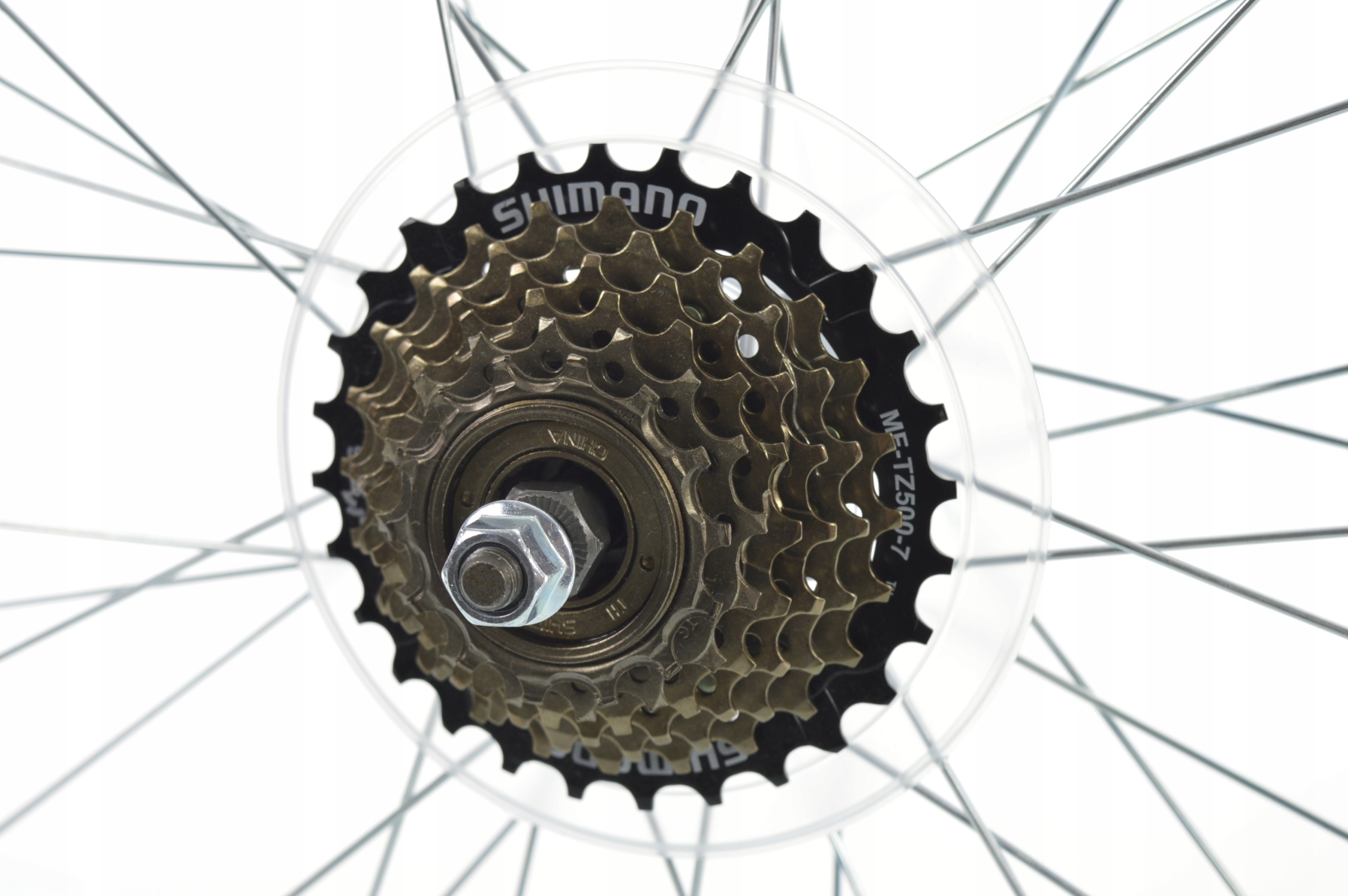 - Механізм вільного ходу в комплекті з колесом SHIMANO MF-TZ500-7 b > вбудований (встановлений і затягнутий, готовий до використання) і протектор спиць, який запобігає застряганню ланцюга між вільним ходом і спицями, одночасно захищаючи їх