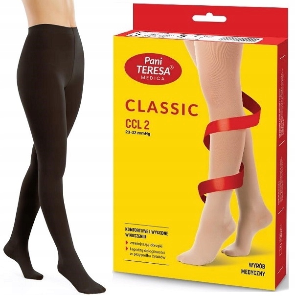 Pass Teresa Medica Classic компресійні продукти це медичні пристрої, які використовуються в компресійній терапії. Продукти призначені для лікування варикозного розширення вен і набряків. В упаковці 1 пара колготок.