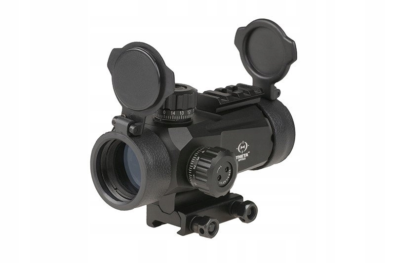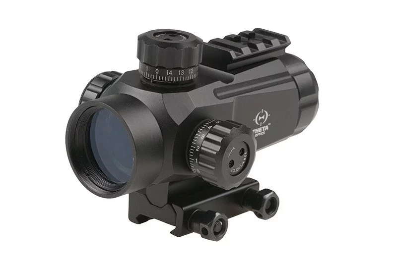 Відкритий приціл із червоною точкою Theta Optics™, що живиться від батареї CR2032, дозволяє використовувати зелену або червону точку прицілювання для як денні, так і нічні операції. Точку прицілювання можна плавно регулювати по вертикалі і горизонталі завдяки зручним барабанам на корпусі - як у телескопів! Він також має кілька рівнів інтенсивності. Встановлений на стандартну 22-міліметрову рейку RIS, коліматор забезпечує швидке й точне прицілювання.