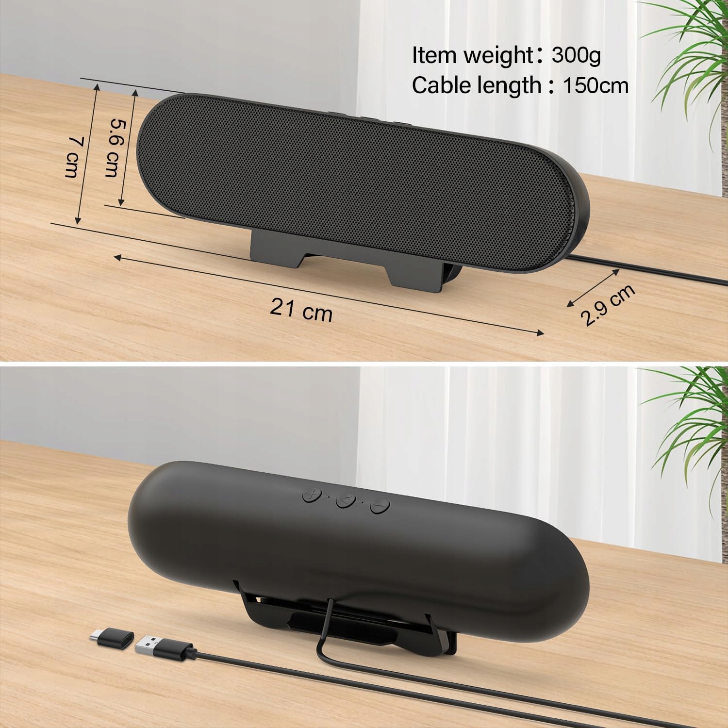 Комп'ютерна колонка ZETIY, USB-комп'ютер з USB-входом, портативна міні-саундбар із кліпсою для монітора, настільного комп'ютера, ноутбука, ноутбука (чорна)