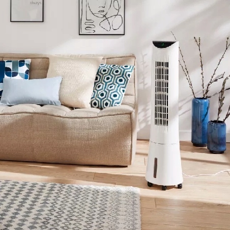 Колонний вентилятор GoodHome із зволожувачем 4 л – практичний пристрій, який можна використовувати всередині приміщень.