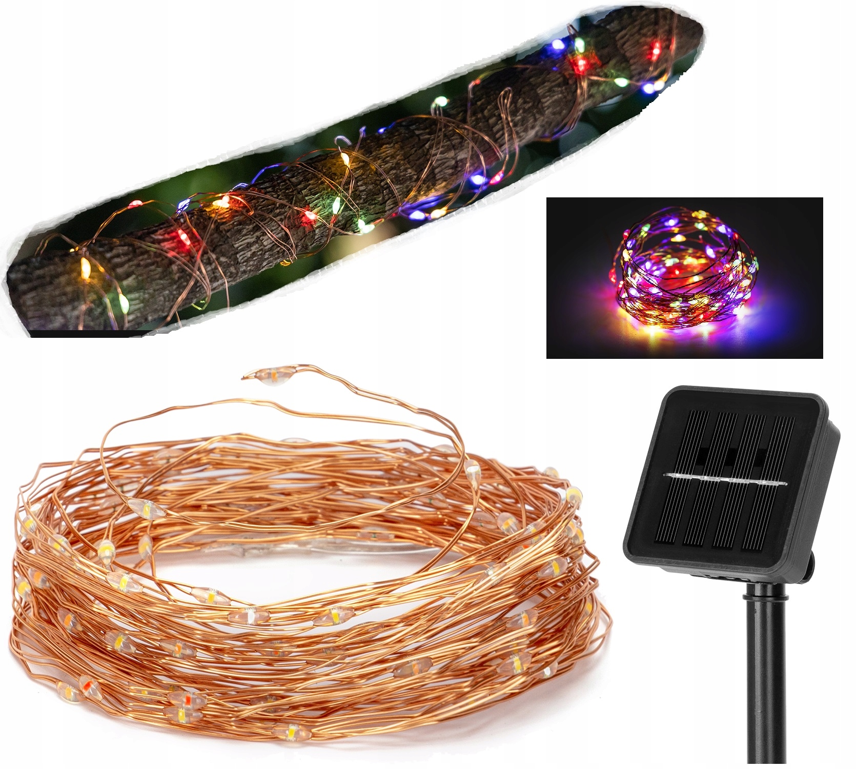 КОЛЬОРОВА СВІТЛОДІОДНА ГІРЛЯНДА RGB SOLAR WIRE 10M x100