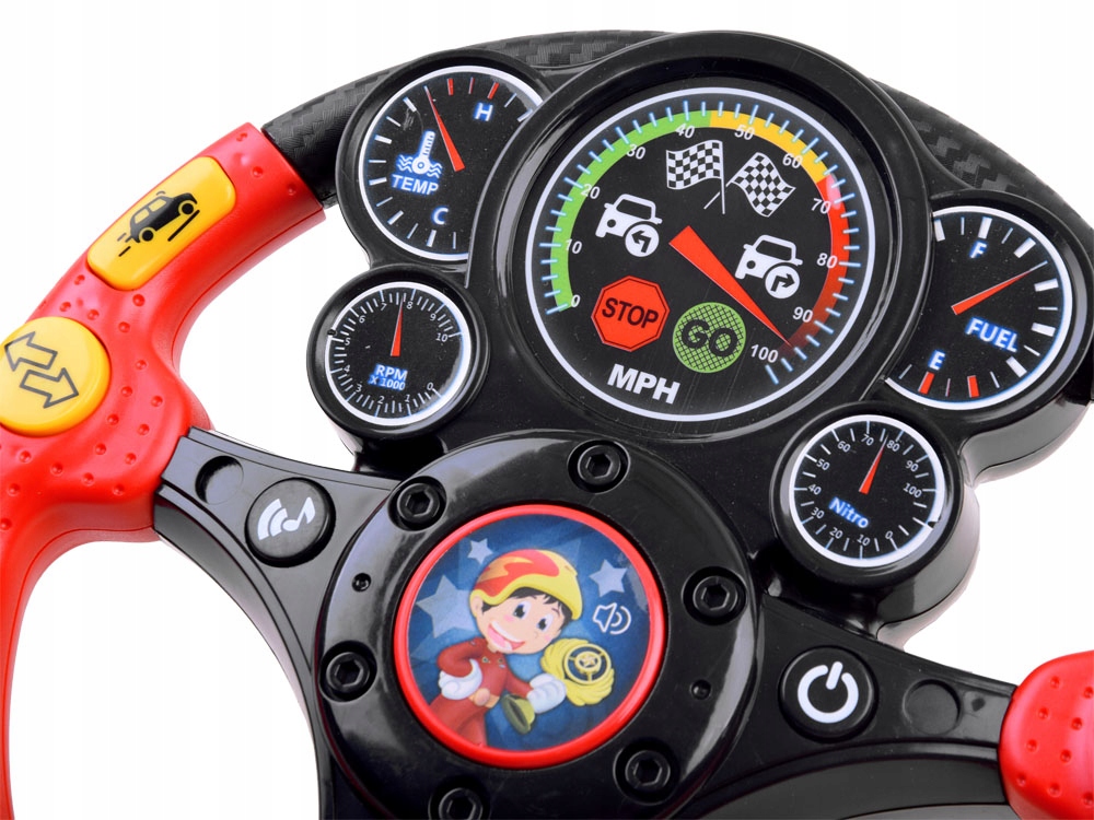 - Стань маленьким водієм і вирушай у дорогу, повну пригод! Втомилися від далеких подорожей? Тепер кожна подорож стане пригодою, яку ви із задоволенням продовжите! Подивіться на чарівне кермо з безліччю дивовижних функцій, які зроблять вас господарем дороги! Кермо не тільки вражає візуально, але й оснащено безліччю кнопок, які активують звуки, вібрацію та світло, що зробить задоволення ще більш реалістичним. Лише подивіться на його чудові функції: кнопка ввімкнення/вимкнення керує звуками, вібрацією та підсвічуванням годинника, а дотик до кнопки нот активує радісні мелодії та веселі звуки, які розважать кожну дитину! А при натисканні на жовту кнопку GO кермо вібрує і ви чуєте звук автомобіля, що рухається! Крім того, у вашому розпорядженні мигалка зі стрілками, яка повідомляє про зміну напрямку руху і підсвічує відповідну сторінку на годиннику. Хочеш загальмувати? Натисніть кнопку з малюнком автомобіля і відчуйте вібрацію і звук гальмування. А коли веселощі закінчуються, кермо самостійно вимикається з приємним звуком! Ця чудова іграшка, виготовлена з високоякісного пластику в стильному чорно-червоному кольорі, має розміри 23,5 х 23,5 х 5 см і упакована в привабливу картонну коробку. Це чудова ідея подарунка для кожного маленького водія! Подаруйте своїй дитині радість і розваги, які ніколи не будуть нудними!