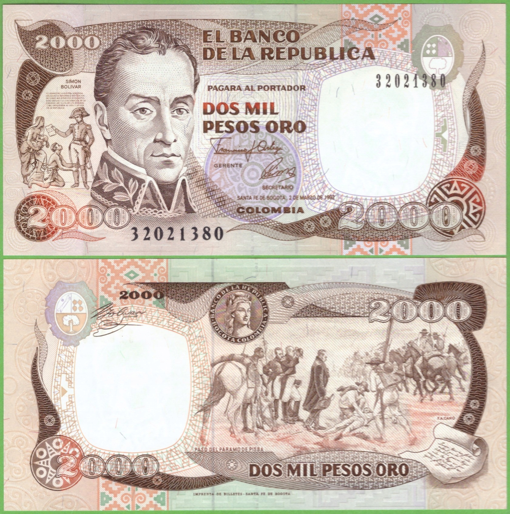 КОЛУМБІЯ 2000 ПЕСОС 1992/03 P-433Aa UNC ВІД КІЛЕРИ