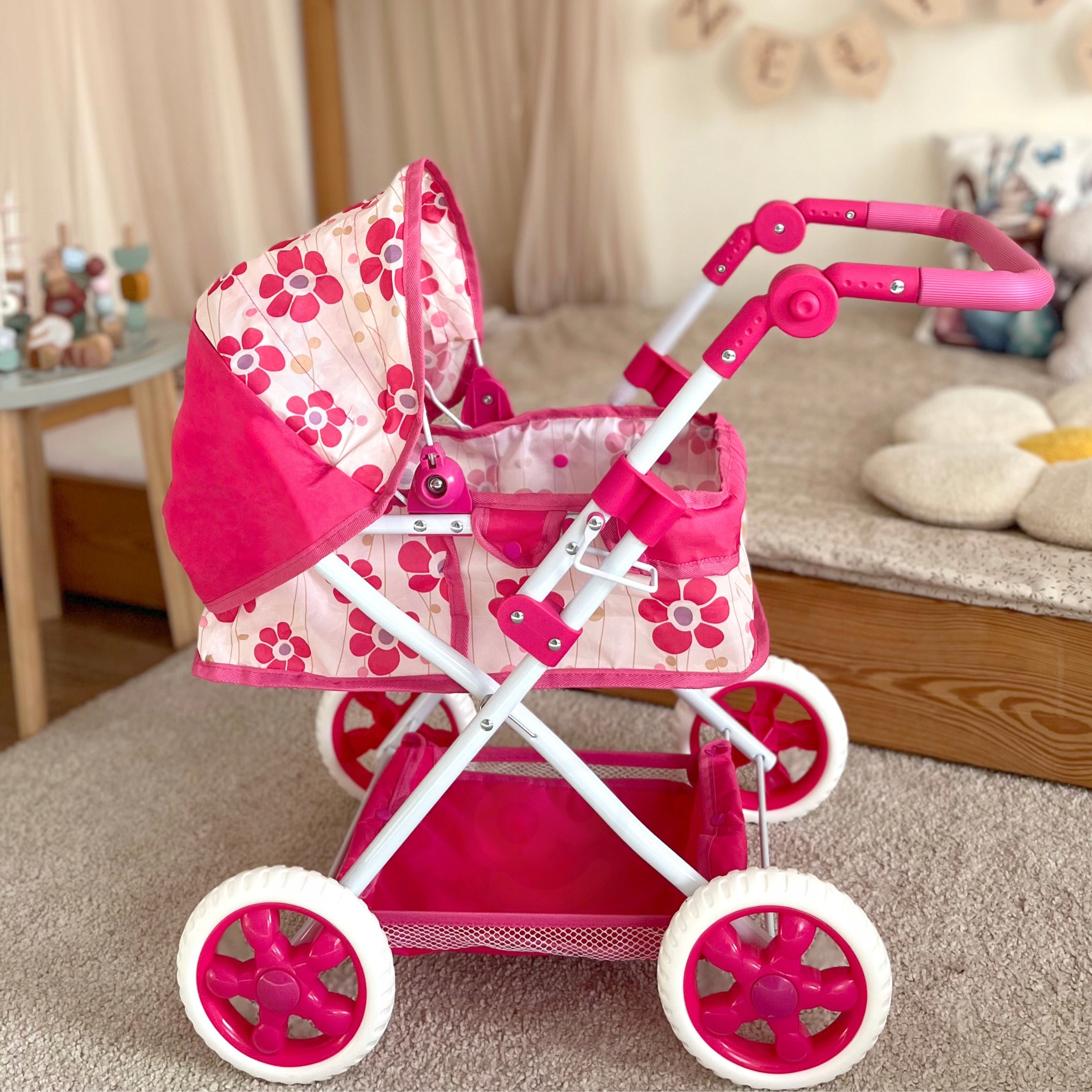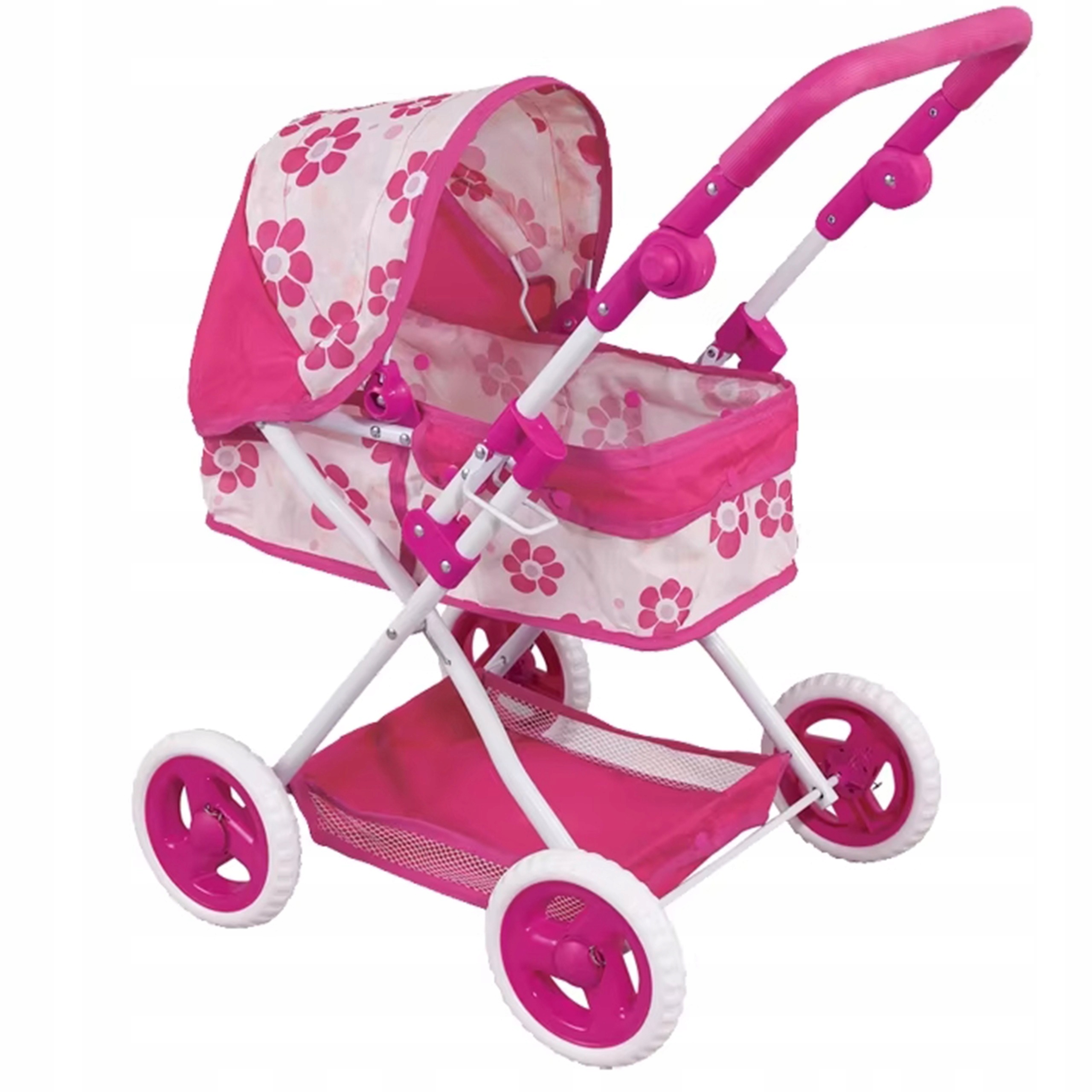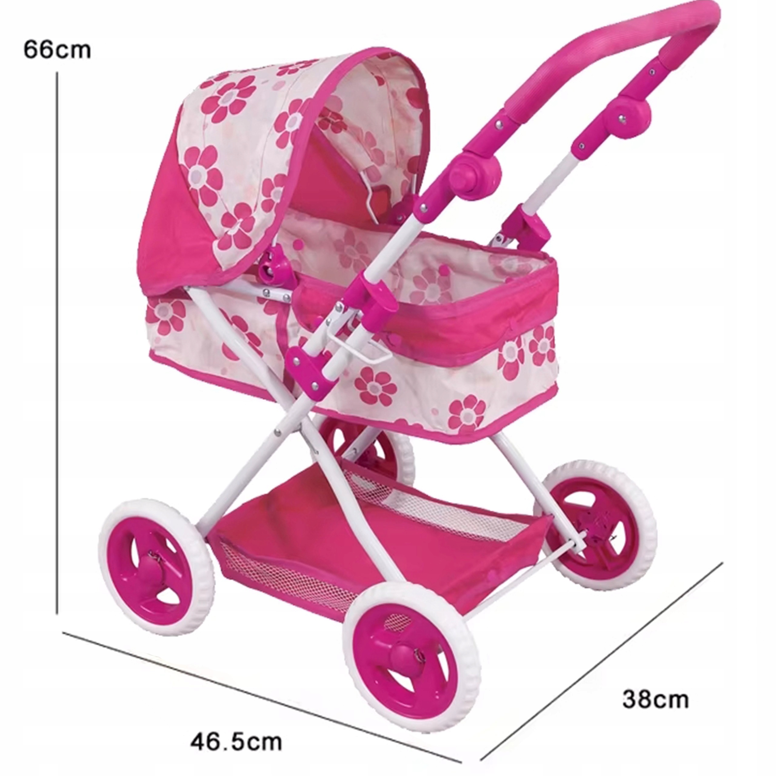 КОЛЯСКА ДЛЯ ЛЯЛЬКИ РОЖЕВА, ГЛИБОКА, РЕГУЛЬОВАНА РУЧКА, КОШИК ДЛЯ КВІТІВ, WOOPI ROYAL