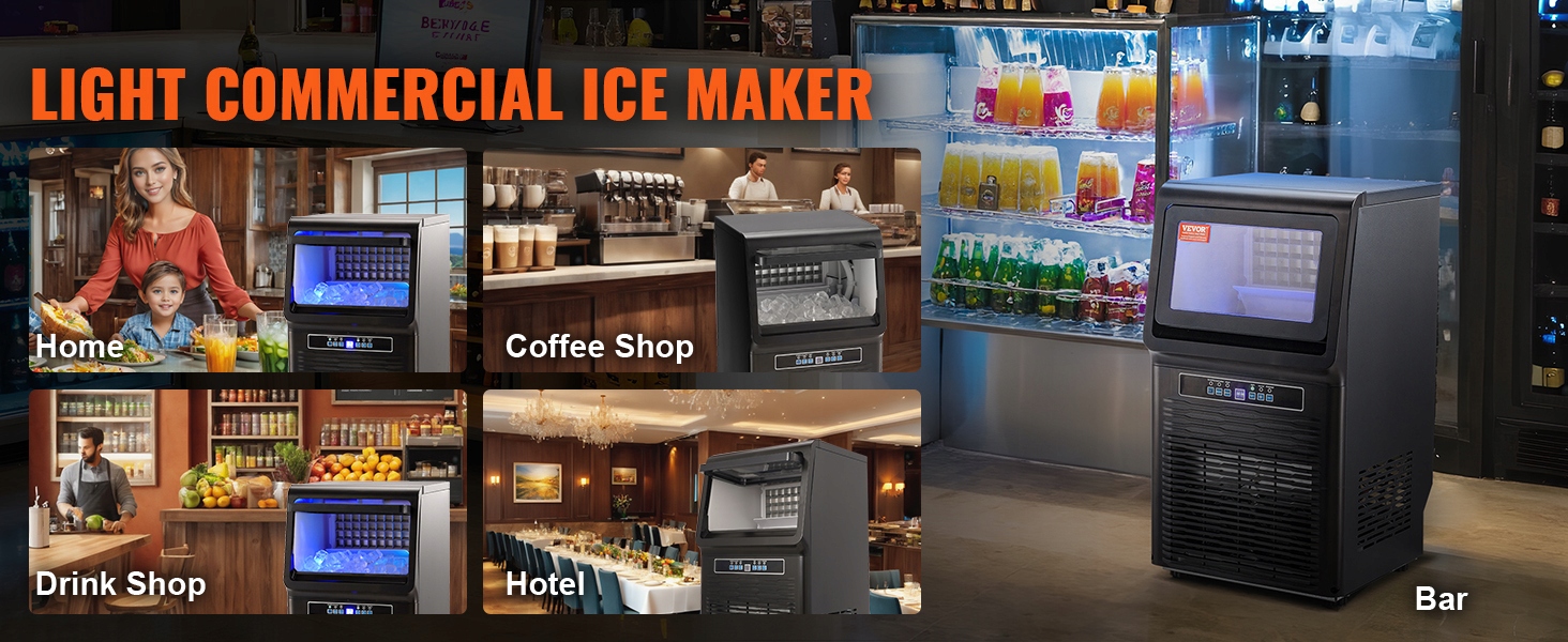 ✅na комерційна крижана куберка оснащена 36 кубиками льоду, що дозволяє обмежити товщину льоду, використовуючи час вироблення льоду. компресор всього за 12-15 хвилин.