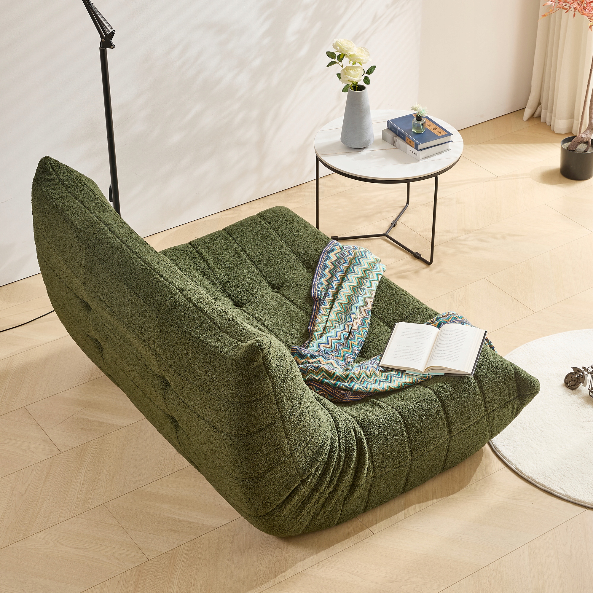 🎗️[Матеріали преміум-класу] Цей диван виготовлено з оксамитової тканини Teddy Velvet найвищої якості, яка надзвичайно м’яка та ніжна до шкіри. Ніжна текстура гарантує теплі обійми кожного разу, коли ви сідаєте на нього. Його тривалий комфорт забезпечить роки насолоди.