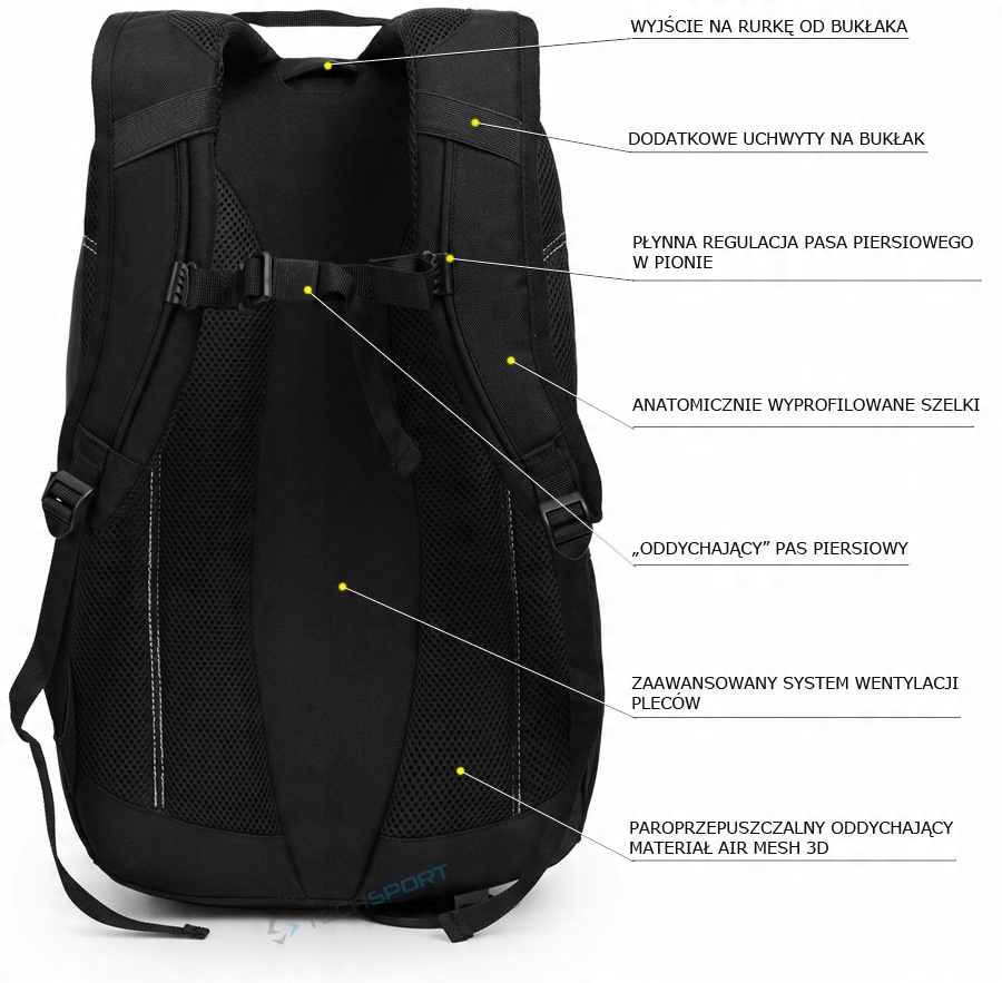 Високоякісний рюкзак з фірмовим містом. Модель "Sirius 30" ідеально підходить для поїздок, до школи або як рюкзак для щоденного використання. Завдяки вдосконаленій системі навантажувальної системи CDS у поєднанні з вентиляційною системою Air-Con та анатомічно фігурними брекетами, рюкзак дуже добре зношений, він комфортний і навіть після довгої подорожі ми не відчуємо втомлення. У ньому є одна основна камера з великим отвором для завантаження з плоскою кишені для зумер, додаткова менша камера для меншого обладнання з організатором та місткою передньої кишені. Суцільно зроблений, добре продуманий і закінчений - вдосконалював кожну деталь. Виготовлений з високоякісних матеріалів, таких як: Поліестер RIP Stop та 600D поліестер. Цей матеріал характеризується дуже високою стійкістю до потертостей і сліз. Рюкзак має ручку для перенесення в руку, регульованих брекетів із заповненням повітряної сітки та світловідбиваючими елементами, що підвищують безпеку. Рюкзак був пристосований для встановлення Бухека - він має внутрішню камеру пряжки з трубкою на відкритому повітрі та ручки на аркуші трубки. Ремінь стегна стабілізує рюкзак на плечах.