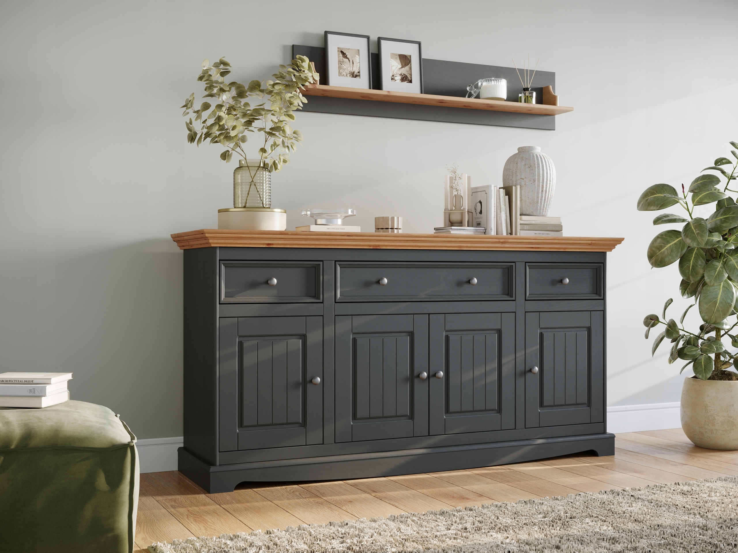 Графіт комод з ящиками з високоякісної фінської сосни кольору графіт. Завдяки екологічним лакам деревина зберігає свій природний вигляд.