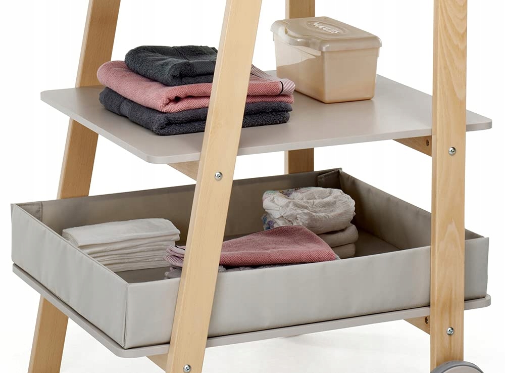 - Оснащений верхня полиця для зміни підгузків і дві нижні полиці та кошик для речей