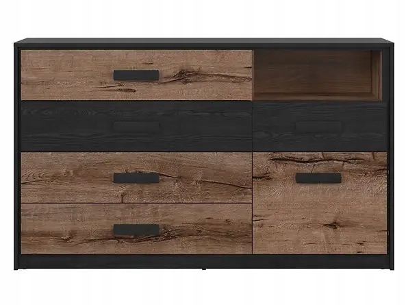 - Комод поєднує в собі теплі кольори монастирського дуба та чорного дуба (лицьовки ящиків), створюючи елегантний колірний дует.