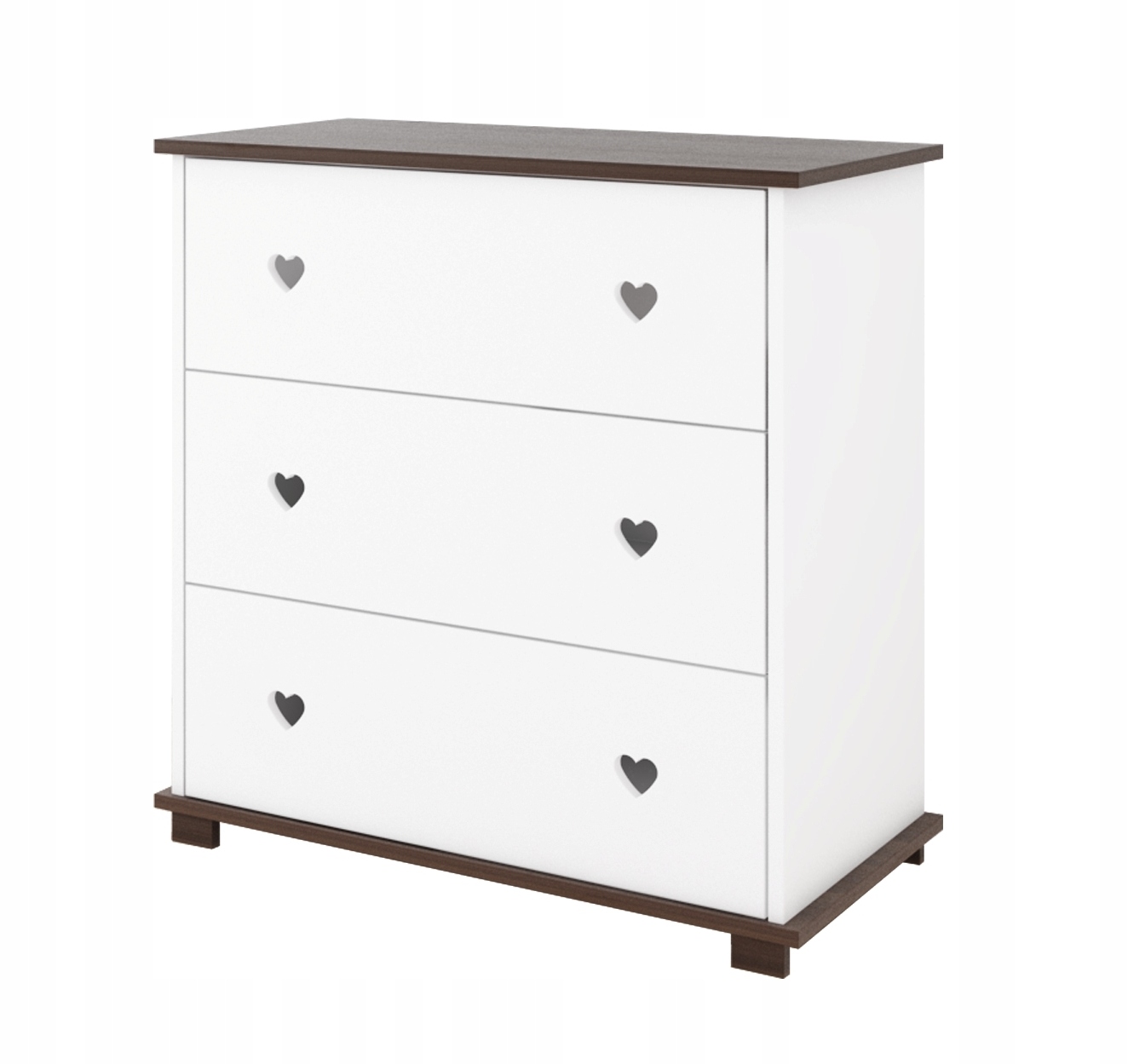 Представляємо вашій увазі СКРИНЯ СКРИДЬ з колекції HEARTS. Комод виготовлений з високоякісного меблевого щита (I клас) і сировини, що відповідає необхідним стандартам. Його округлі форми та якість матеріалу забезпечують безсумнівну безпеку для невеликого використання. Комод стоїть на чотирьох ніжках, що робить його дуже стійким і в той же час дозволяє підтримувати його в чистоті навіть у таких складних місцях. Ящики, встановлені на роликових напрямних, дозволяють легко зберігати дитячий гардероб. Вони розроблені таким чином, щоб їхній просторий інтер’єр задовольнив кожного батька.