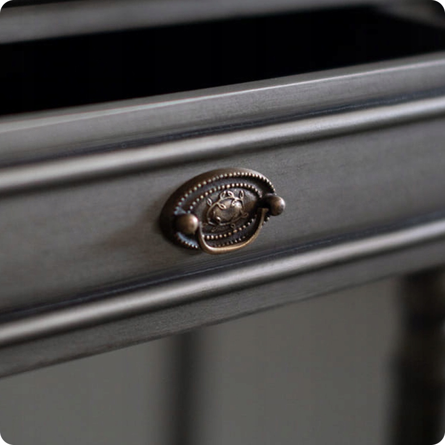 Бажаючи показати вам, як красиво виглядає поєднання дзеркала та комода, ми створили набір вище. Ми впевнені, що такий комплект стильних меблів неймовірно наповнить Ваш будинок або офіс. Важливо знати, що дзеркало підвісне і має встановлені ручки. Стильні патиновані сірі меблі зараз дуже модні та ідеально поєднуються з такими стилями, як Хемптон.